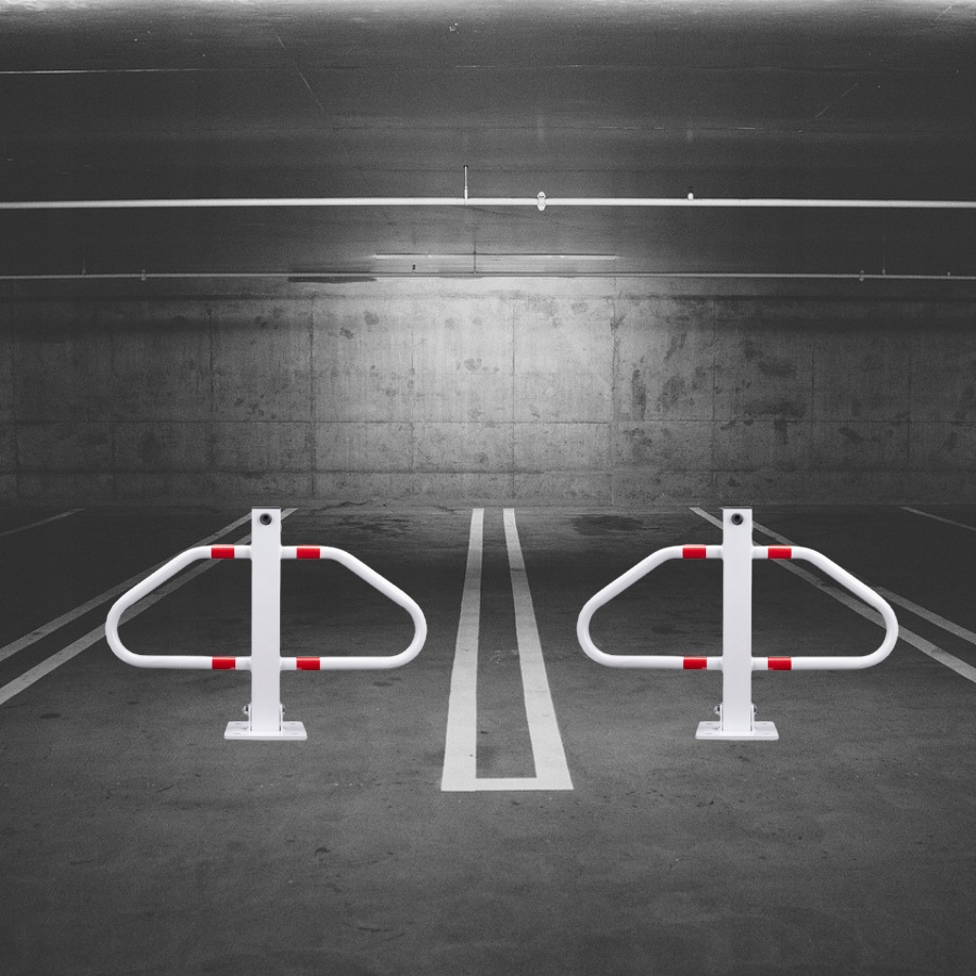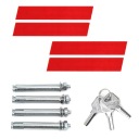 Wysokość maksymalna blokady to 48 cm. Czerwone paski są odblaskowe. W zestawie materiały montażowe.