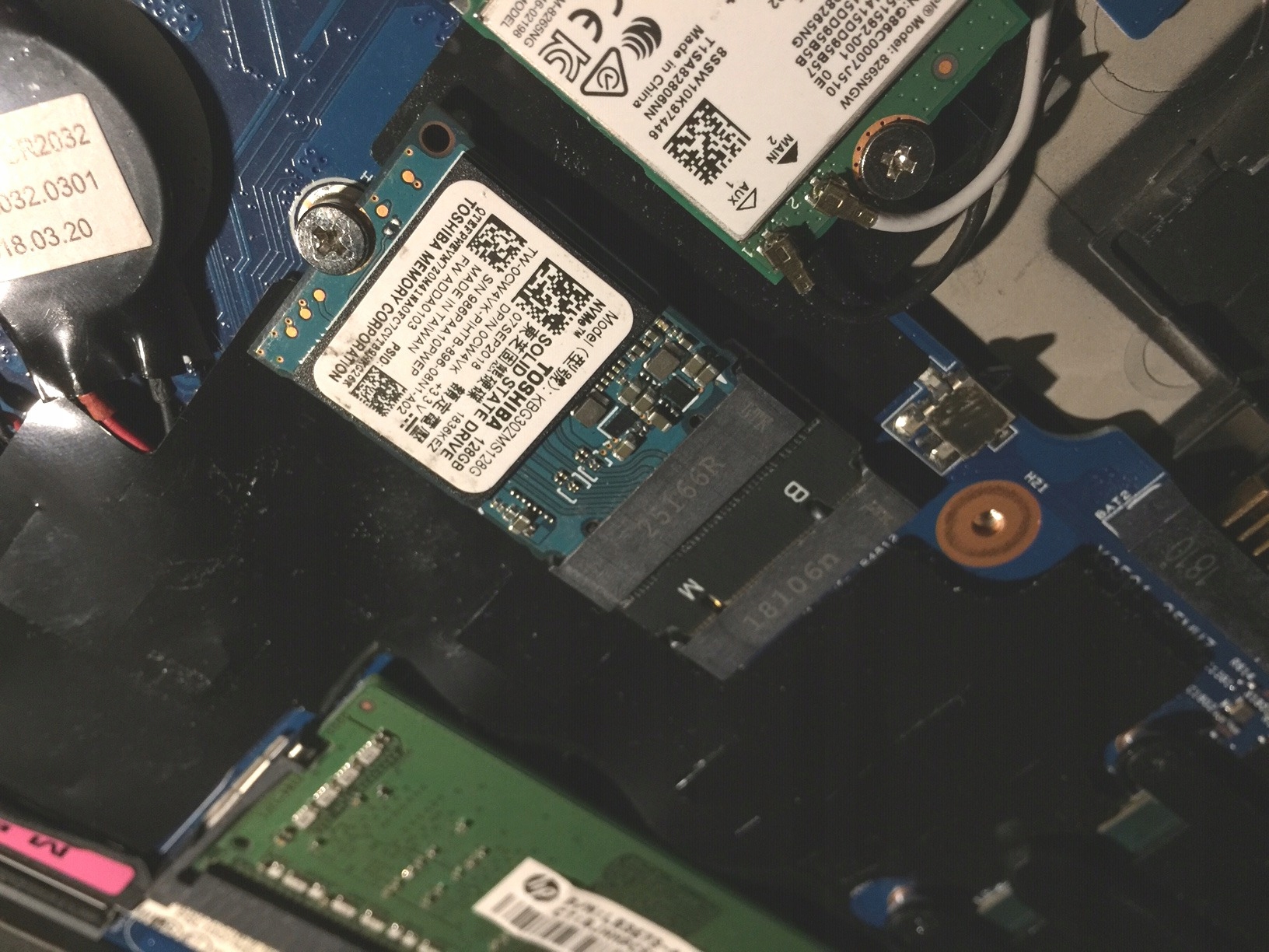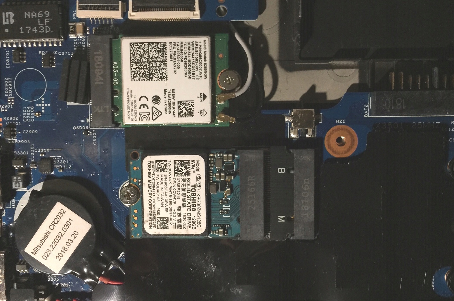 *przykładowo na zdjęciu pokazany dysk Toshiba 128 GB M.2 2230 PCI-E x2 NVMe zamontowany na adapterze w Lenovo T570 /T580