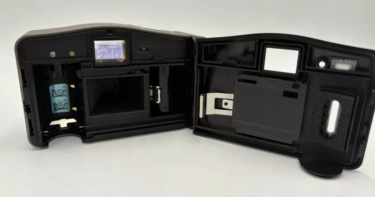 Aparat analogowy Minolta AF-Big Finder, znany jako AF150BF. Jest to prosty, kompaktowy aparat typu point-and-shoot na film 35 mm, który wyróżnia się wyjątkowo dużym i jasnym wizjerem, ułatwiającym kadrowanie. Charakterystyka aparatu