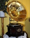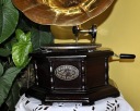 Drewniany ośmiokątny patefon zdobiony dużą ,piękną