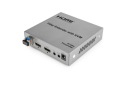 Przedłużacz światłowodowy HDMI to urządzenie przesyłające sygnał audio i wideo za pomocą dwukierunkowego kabla jednowłóknowego. Przesyła obraz w wysokiej rozdzielczości na odległość do 20 km. Obsługuje funkcje IR, RS232 i KVM. Dzięki zastosowaniu dwukierunkowego interfejsu LC z pojedynczym włóknem charakteryzuje się niskim kosztem i stabilną transmisją sygnału. Może być stosowany w monitorowaniu bezpieczeństwa, sygnałach wysokiej rozdzielczości między budynkami, dużych ekranach i innych instalacjach transmisji sygnału HDMI na duże odległości.
