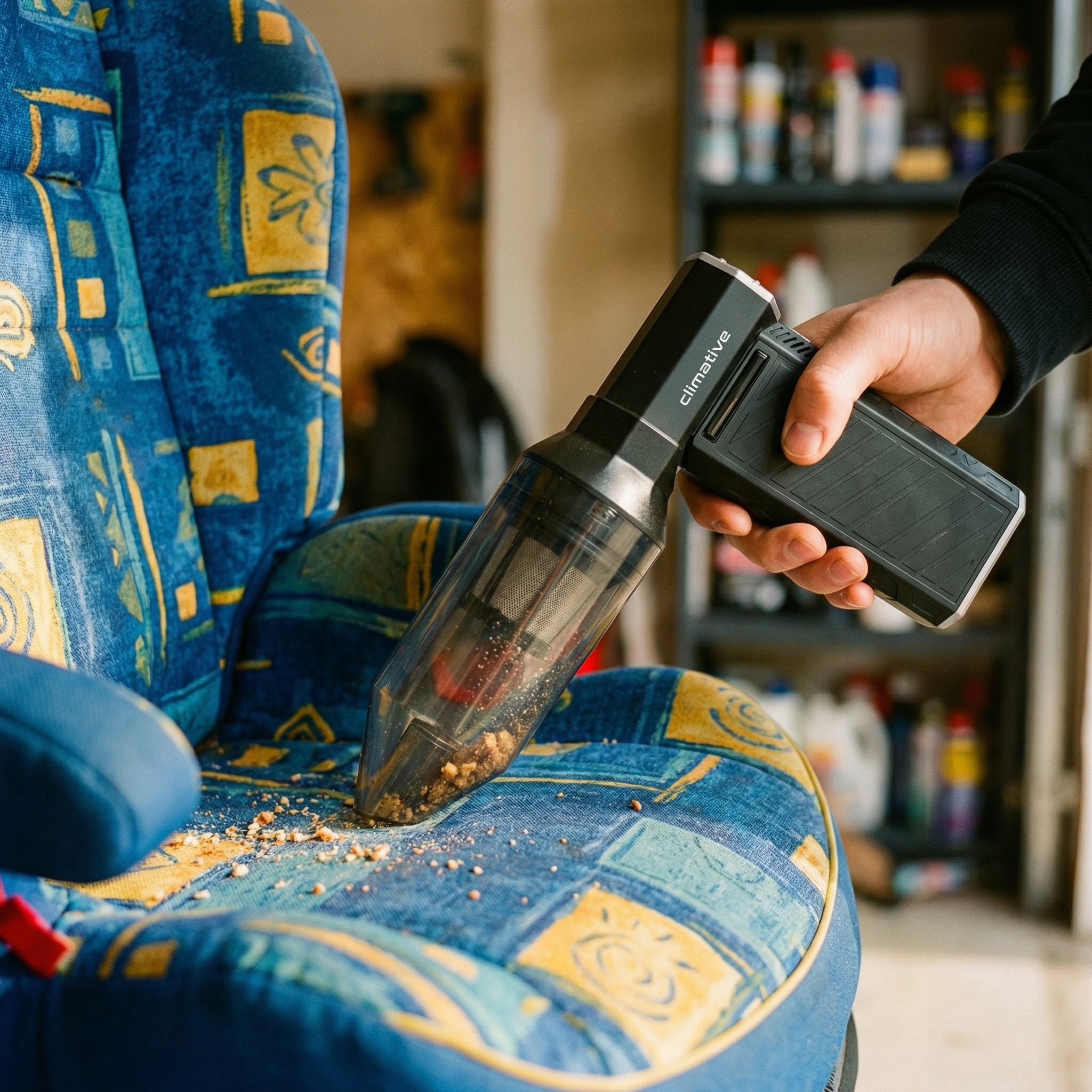 Tak, kompaktowe wymiary i bezprzewodowa konstrukcja ułatwiają czyszczenie wnętrza auta – nawiewów, deski rozdzielczej, szczelin foteli czy schowków – bez plączących się kabli.