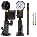 Tester przeznaczony jest do pomiaru ciśnienia otwarcia wtryskiwaczy w silnikach wysokoprężnych samochodów osobowych, ciężarowych, ciągników. Kontroluje też szczelność oraz jakość rozpylania wtryskiwacza. W zestawie adaptery (gwint M12 i M14) do mocowania wtryskiwaczy oraz manometr do 600 bar.