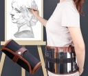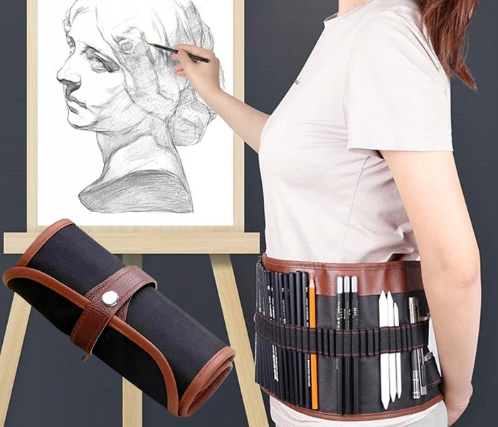 Pokrowiec wyposażony jest w kieszonkę, która zapobiega łamaniu się ołówków oraz brudzeniu przez grafit. Szereg gumowych szlufek pomieści niezbędne akcesoria.