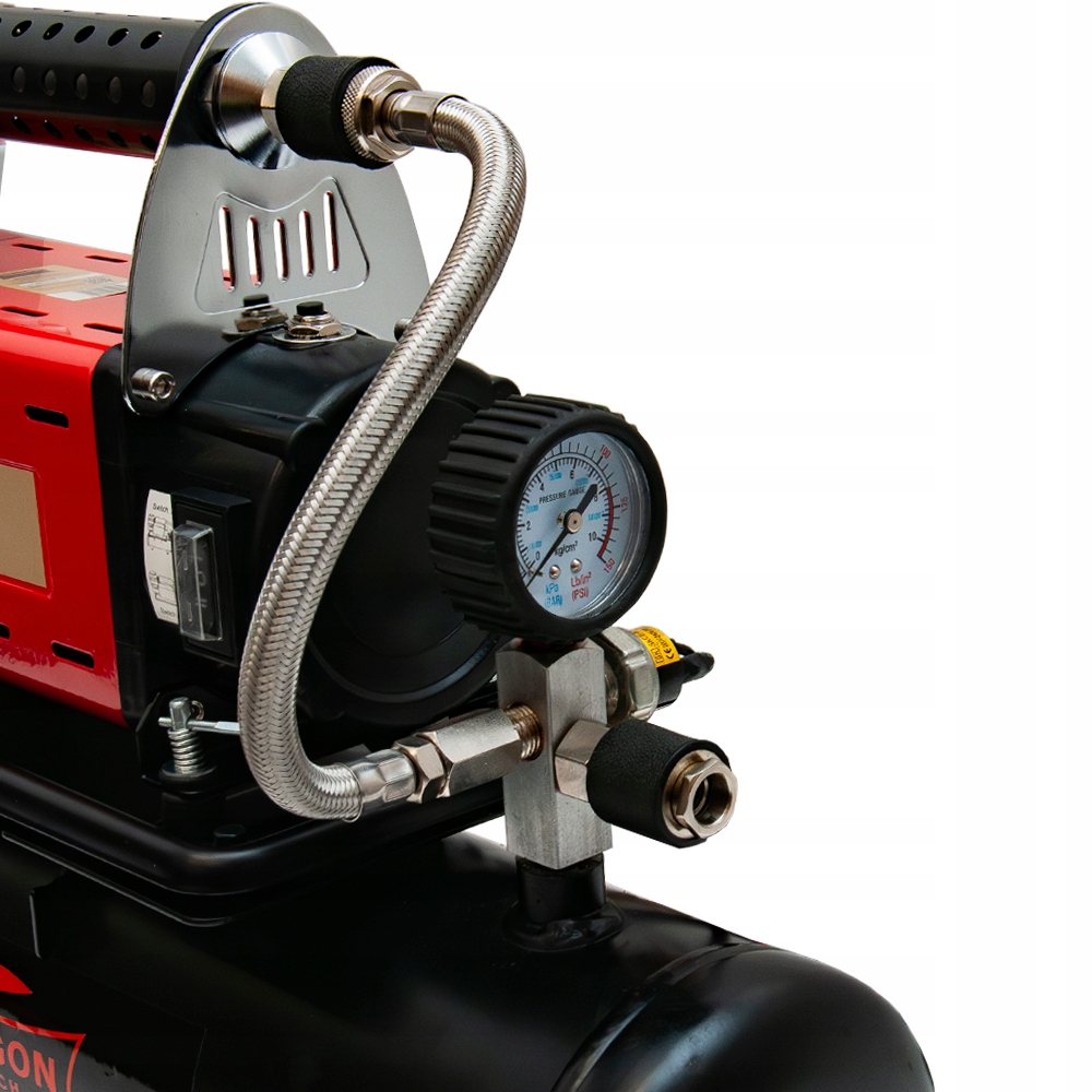 Zaawansowany manometr zintegrowany w urządzeniu umożliwia precyzyjne monitorowanie ciśnienia, umożliwiając dokładne dostosowanie go do optymalnych wartości. Dla jeszcze wyższej wygody i precyzji, kompresor posiada również dodatkowy manometr na przewodzie powietrza, który zapewnia wygodny odczyt tuż przy zaworze opony. Dzięki tej dwustopniowej kontroli zapewniasz prawidłowe ciśnienie, co przekłada się na większą wydajność i bezpieczeństwo.
