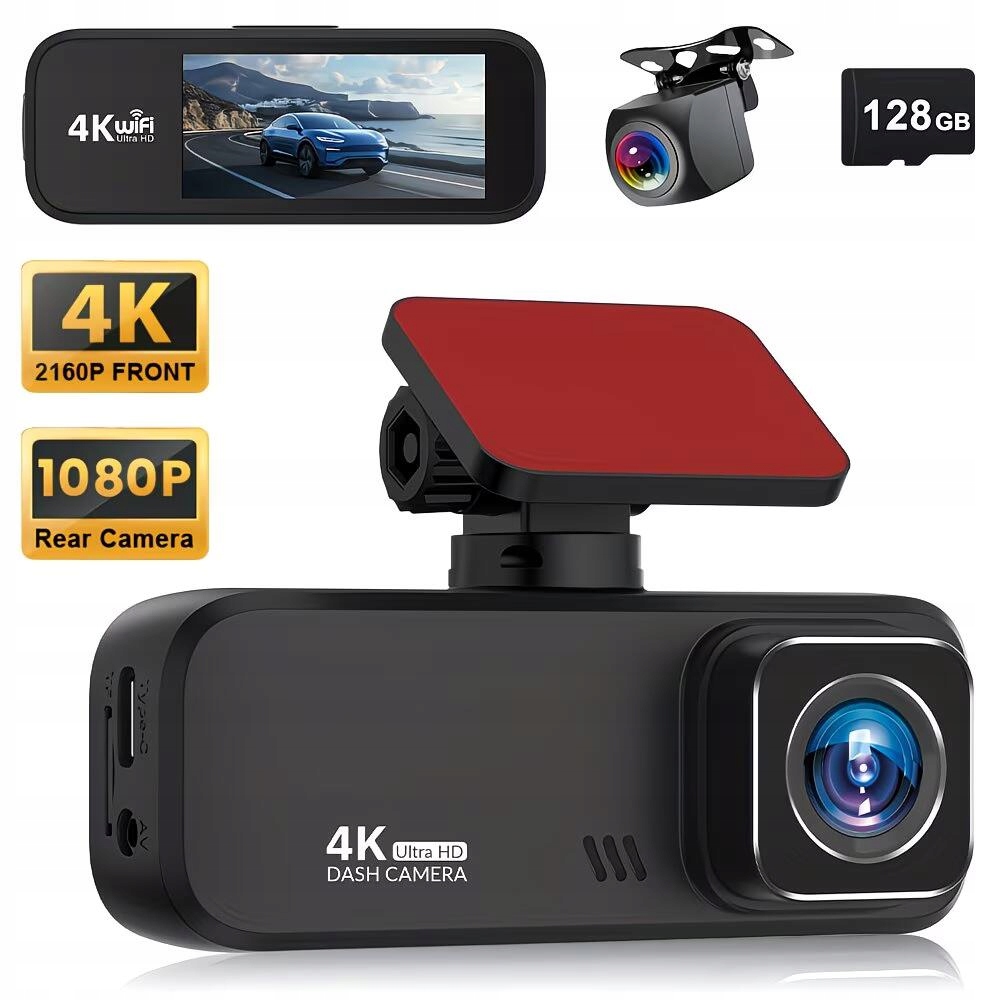 Nowoczesny wideorejestrator samochodowy Dual Dash Cam z nagrywaniem w jakości 4K Ultra HD (przednia kamera) oraz 1080P Full HD (kamera tylna). To kompleksowy system monitoringu pojazdu, który zapewnia ochronę zarówno w czasie jazdy, jak i podczas postoju – idealny dla kierowców prywatnych, firmowych, flot, taxi i przewozów.