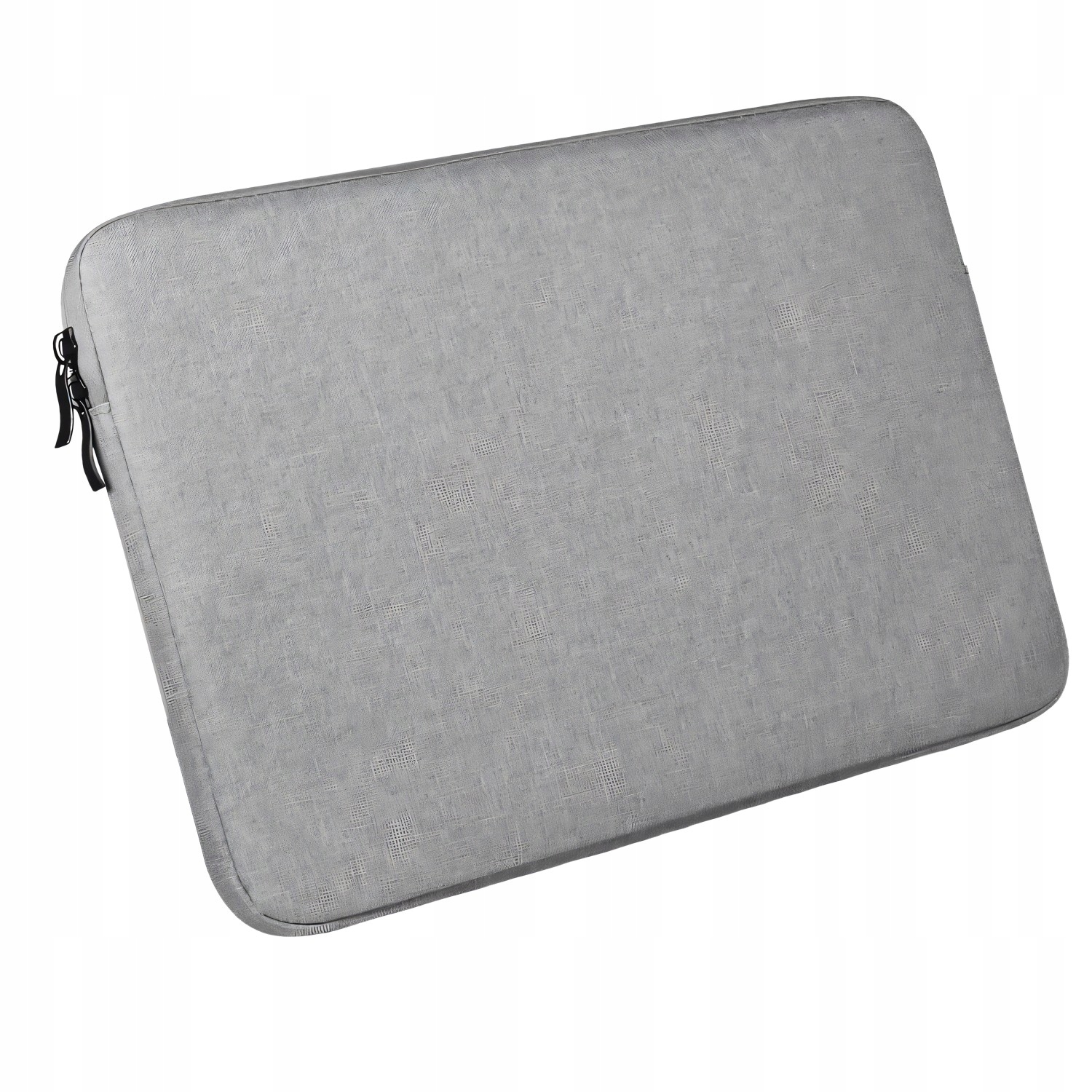 Etui na notebooka została wykonana z gładkiego materiału o eleganckim szarym kolorze, co nadaje jej wyrafinowany wygląd.