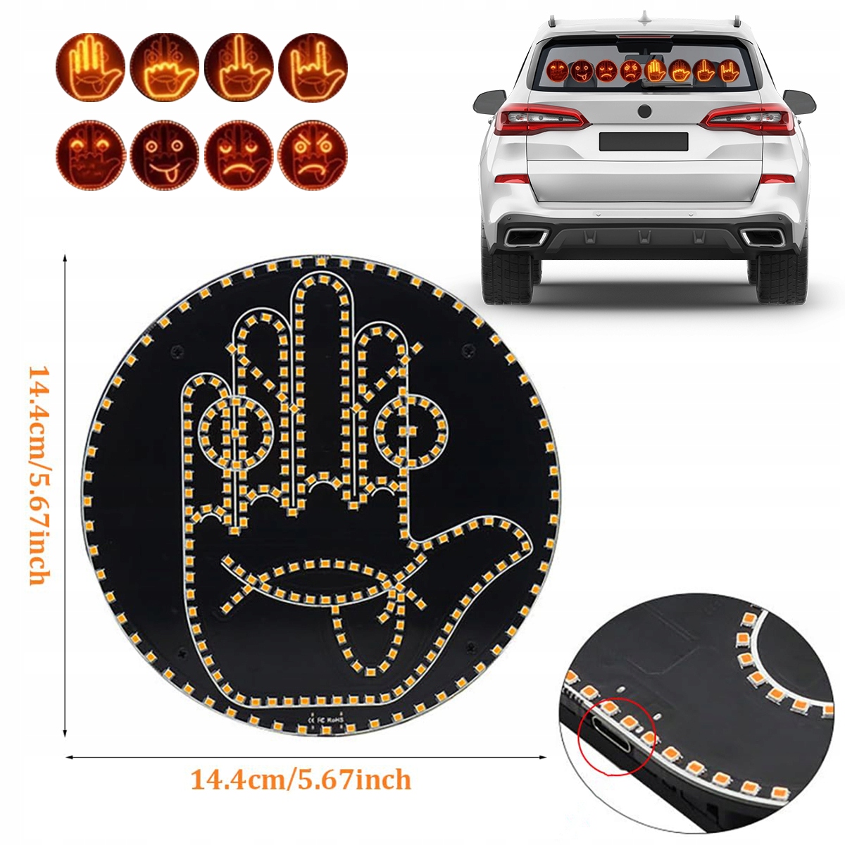 Urządzenie posiada 4 tryby palców i 4 tryby ekspresji, aby przyciągnąć uwagę i służyć jako przypomnienie dla innych kierowców.