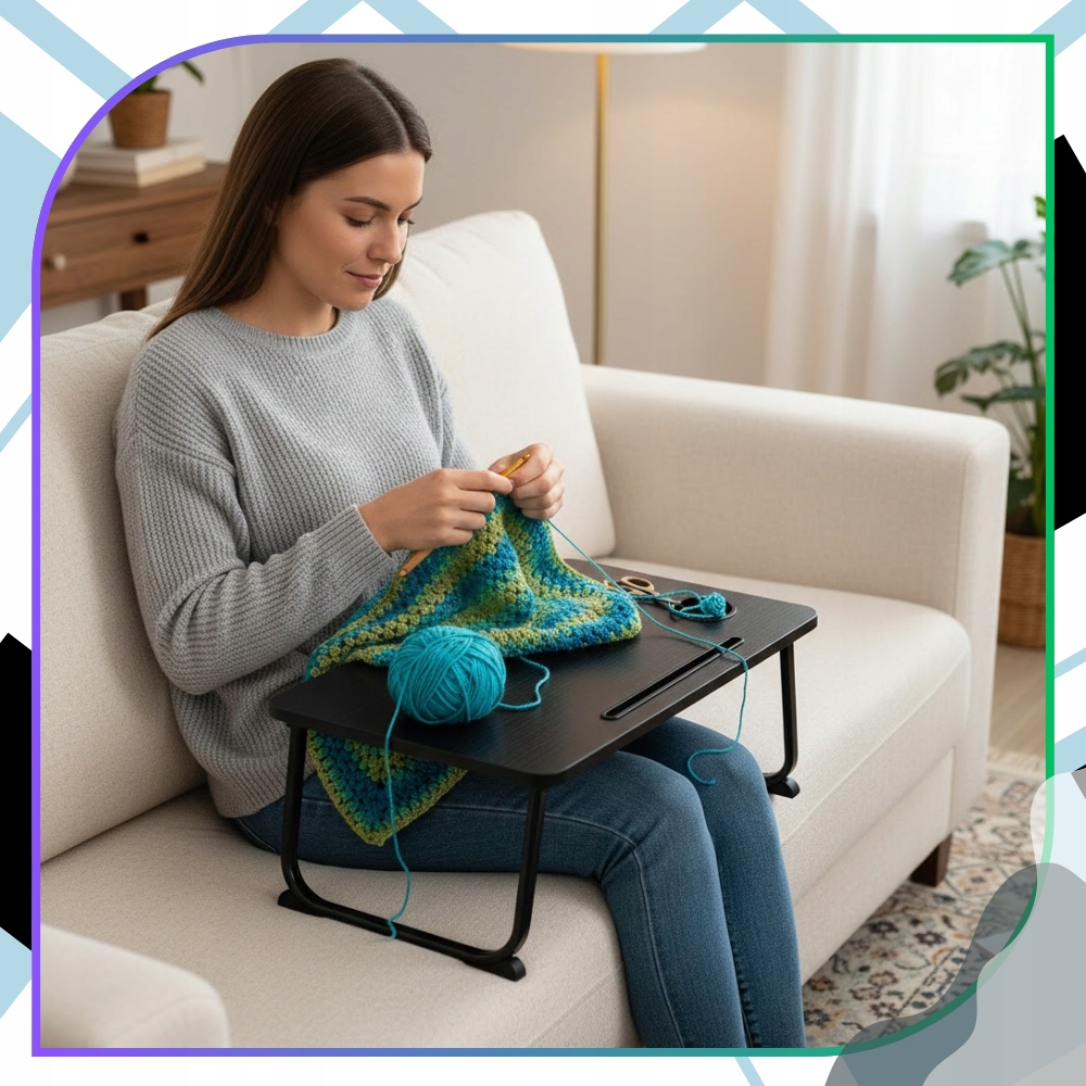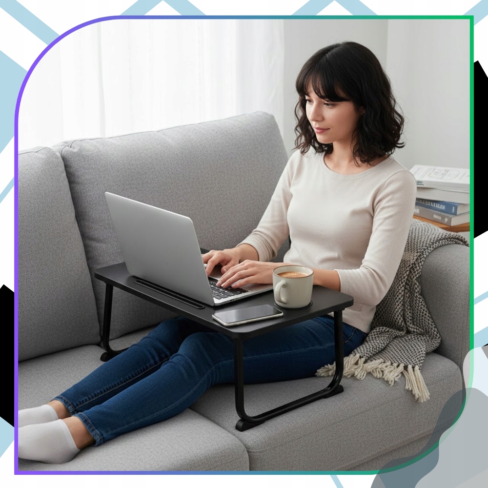 ✅ Ten praktyczny stolik do pracy zdalnej pozwala wygodnie korzystać z laptopa, tabletu lub książek bez konieczności siedzenia przy tradycyjnym biurku.
