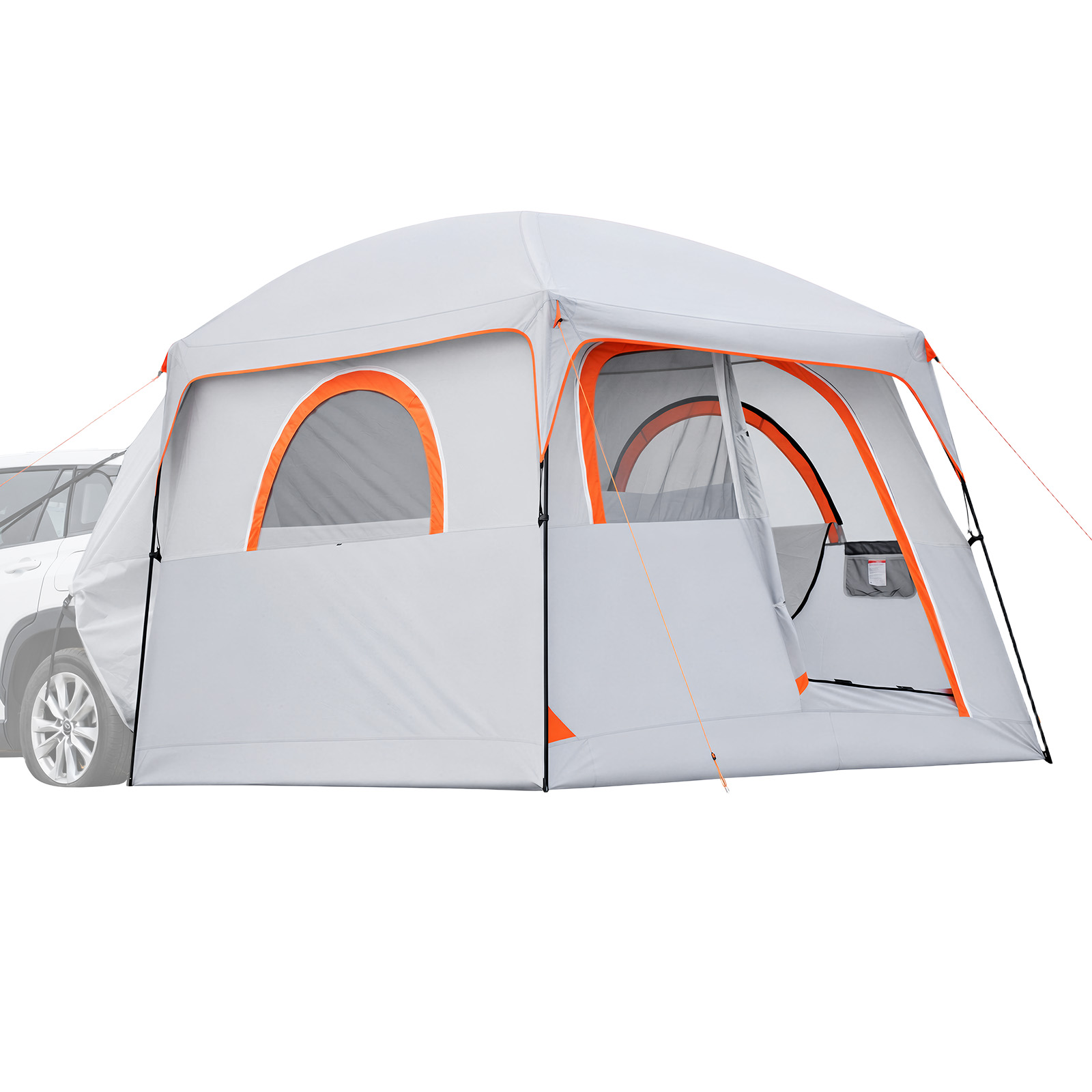 Namiot podwójnego zastosowania: Zamontuj nasz namiot kempingowy do tylnej klapy swojego SUV-a, aby zwiększyć przestrzeń kempingową, lub używaj go niezależnie jako samodzielnego schronienia — łatwy montaż, wygoda i gotowość do użycia na zewnątrz (pasuje do klapy tylnej z górnym podnoszeniem; nie pasuje do tylnych drzwi z bocznym zawiasem).