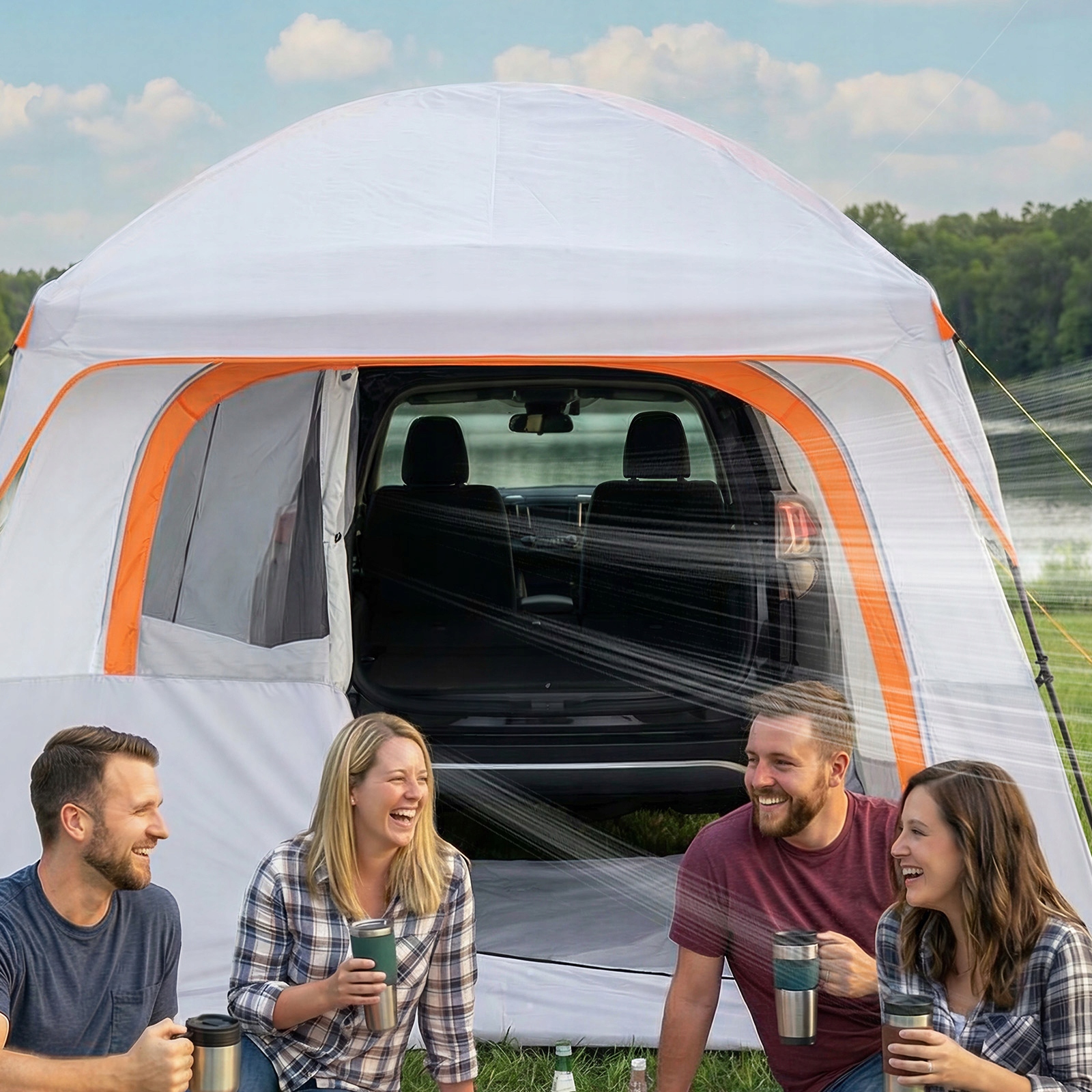 Przekształć klapę bagażnika swojego SUV-a w relaksującą przestrzeń kempingową, gdzie rodzina i przyjaciele mogą się spotykać, dzielić przekąskami, swobodnie rozmawiać i cieszyć się atmosferą na świeżym powietrzu.
