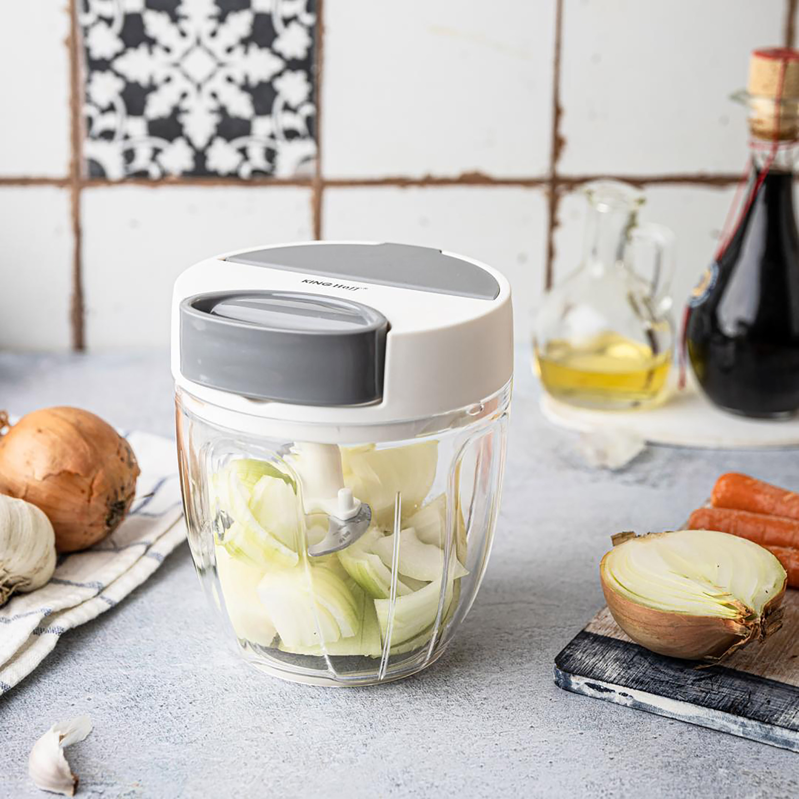 Rozdrabniacz kuchenny 900 ml – szybkie siekanie bez użycia prądu! Ten niezwykle praktyczny rozdrabniacz to idealne rozwiązanie dla osób, które chcą zastąpić ciężką pracę siekania nożem wygodnym mechanizmem sznurkowym. Dzięki kompaktowym rozmiarom i wysokiej wydajności, urządzenie doskonale sprawdza się w codziennym przygotowywaniu posiłków, oferując błyskawiczne rozdrabnianie warzyw, czosnku, ziół oraz owoców.