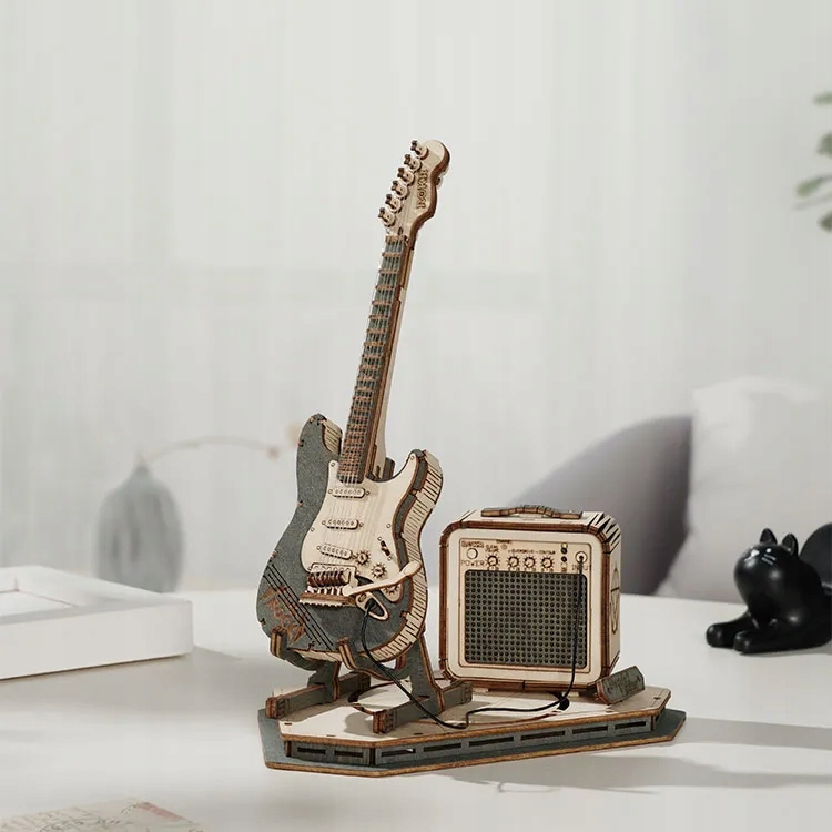 Drewniane Puzzle 3D Electric Guitar od Robotime to model DIY przedstawiający gitarę elektryczną w stylowej, dekoracyjnej formie. To idealne połączenie kreatywnego składania z estetyką inspirowaną światem muzyki.