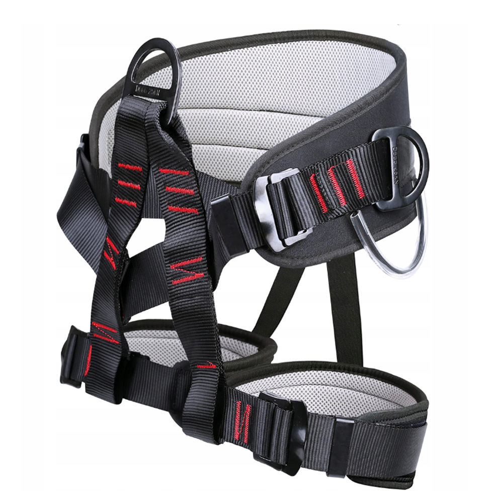 2 pętle na sprzęt i 2 pierścienie D z boku pasa uprzęży, haki na sprzęt są bardzo trwałe i wygodne do zawieszania woreczka na magnezję lub innego sprzętu wspinaczkowego i nigdy nie utrudniają wspinaczki. Wysokiej wytrzymałości pierścienie D chronią Twoje bezpieczeństwo podczas wspinaczki. Wytrzymała czarna klamra umożliwia szybką i łatwą regulację pasa biodrowego i nogawkowego.