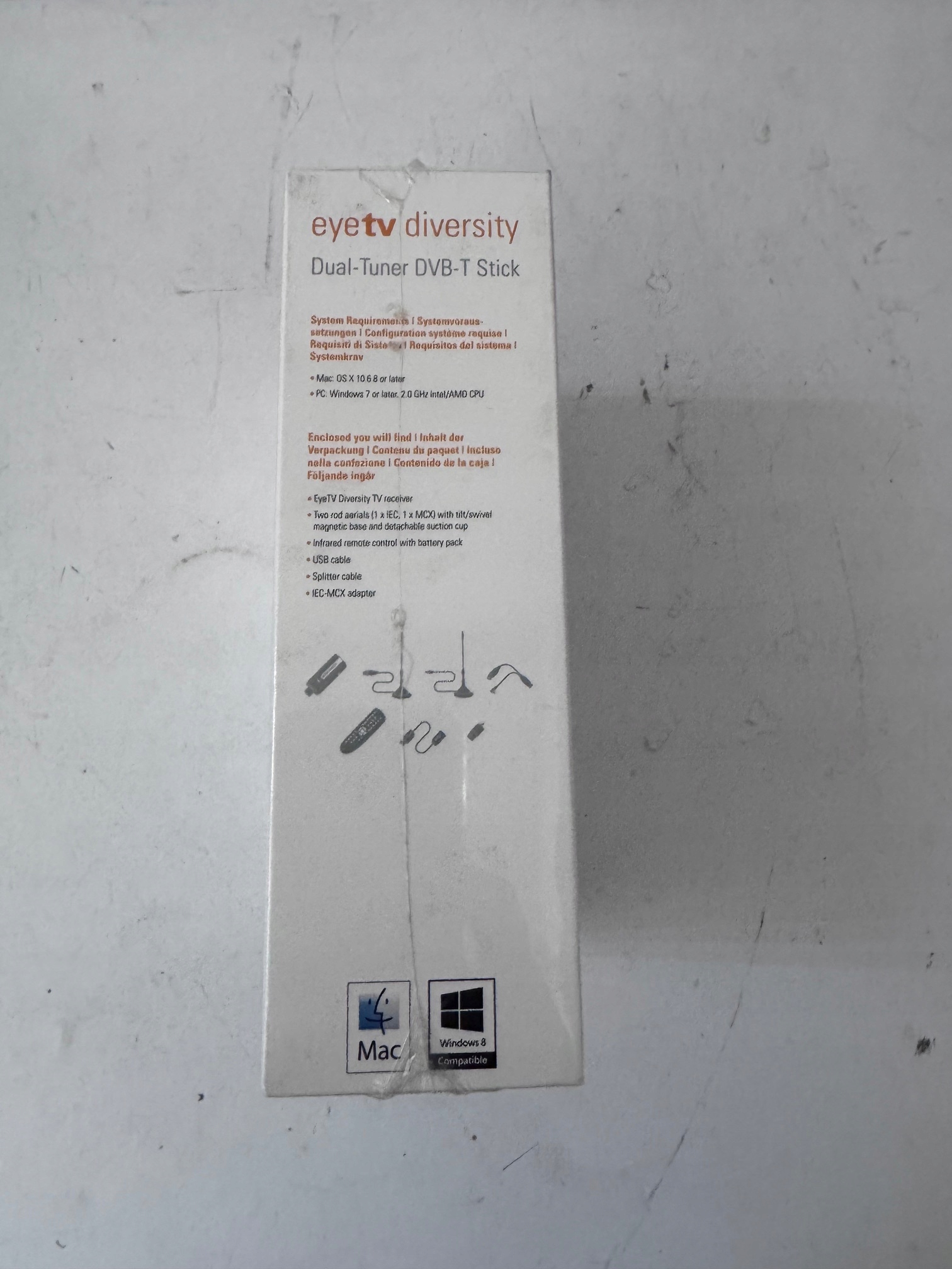 EyeTV Diversity zawiera dwa zintegrowane odbiorniki i dwie przenośne anteny prętowe, które współpracują ze sobą, aby zapewnić optymalny odbiór w trybie Diversity. W trybie podwójnego tunera działają one niezależnie jako dwa różne tunery, dzięki czemu można oglądać dwa różne kanały w trybie obrazu w obrazie lub oglądać jeden program, jednocześnie nagrywając inny.
