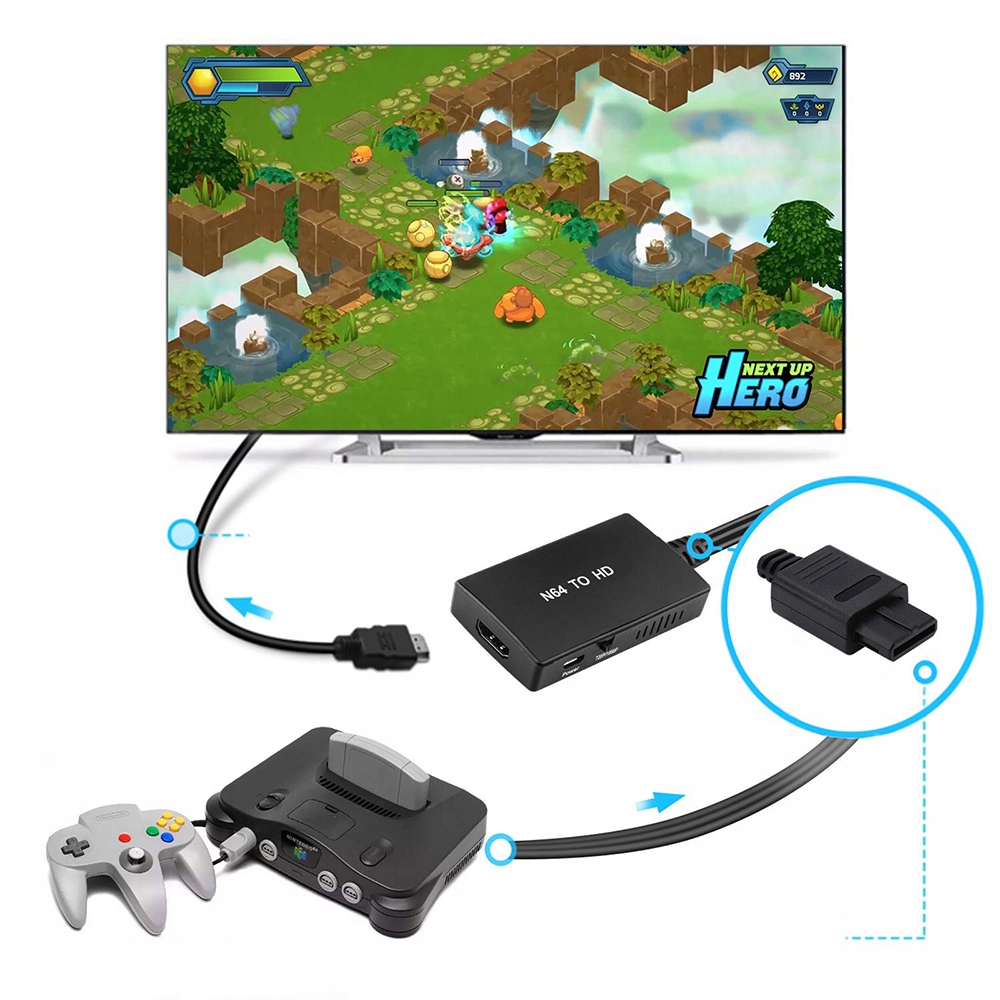 Konwertuje tylko Nintendo 64/SNES/GC na HDMI, nie obsługuje HDMI na AV.