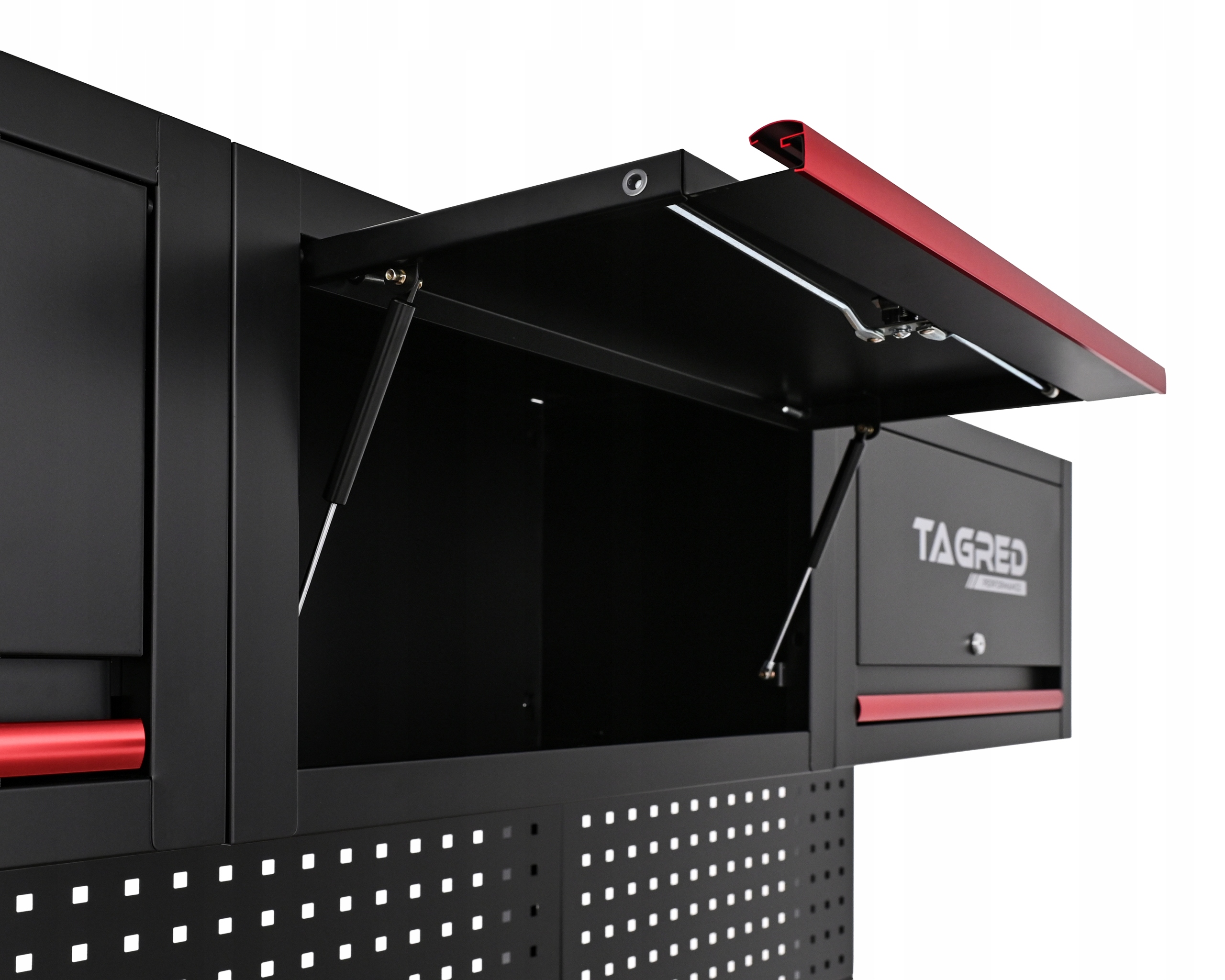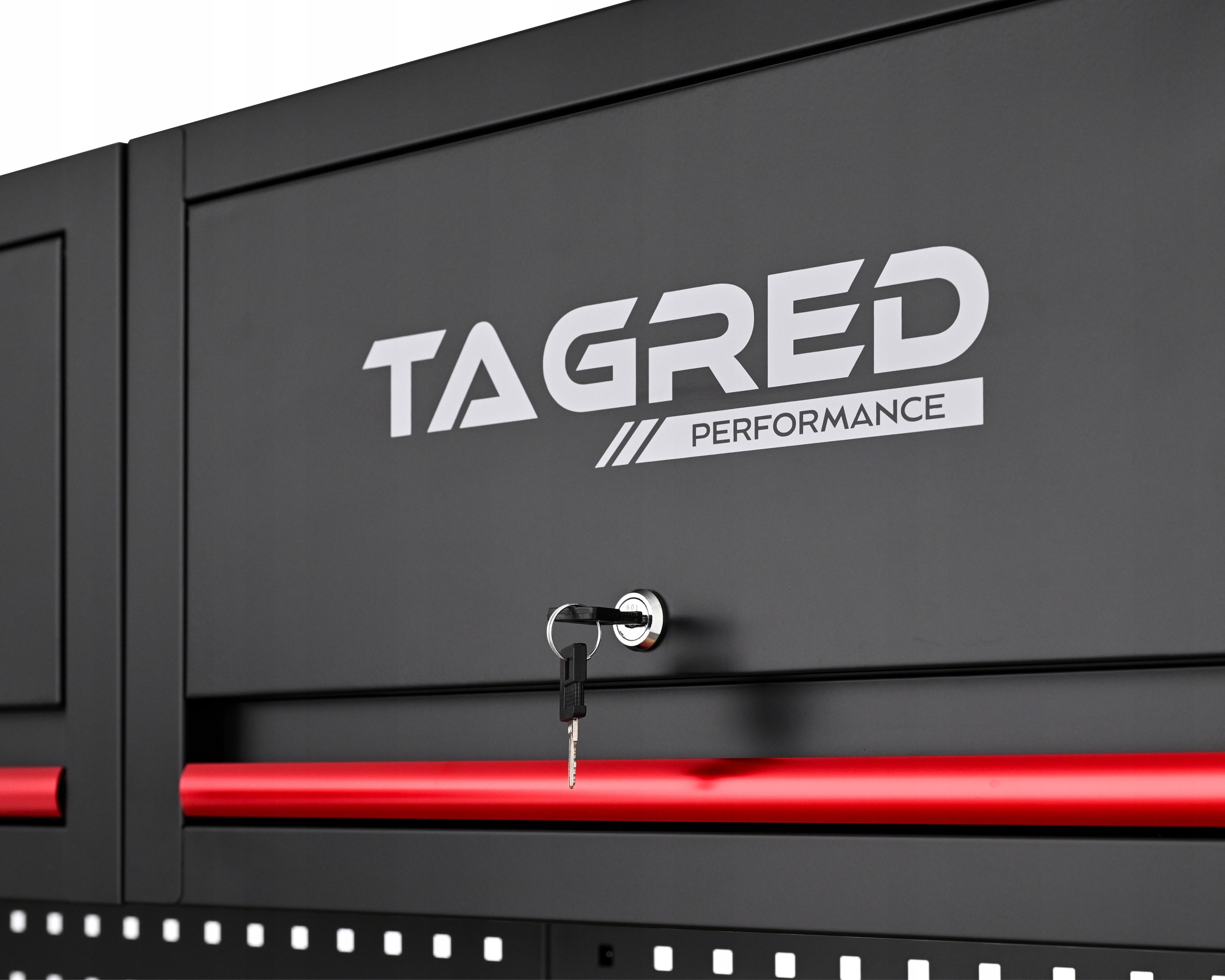 W standardzie zestaw mebli warsztatowych TAGRED wyposażony jest w praktyczne oświetlenie LED montowane na magnes! W komplecie znajduje się zasilacz, a uruchamianie oświetlenia odbywa się jednym dotykowym przyciskiem, co zapewnia maksymalną wygodę podczas codziennej pracy. Jasne, równomierne światło skutecznie doświetla blat roboczy i przestrzeń roboczą, poprawiając komfort, precyzję i bezpieczeństwo.
