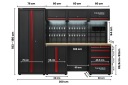 Zintegrowane oświetlenie LED gwarantuje najwyższy komfort pracy. Całość została wykonana z wysokiej jakości stali malowanej proszkowo, co zapewnia trwałość i odporność na uszkodzenia, a system perforowanych ścianek, dodatkowe wieszaki, oganizer na elektronarzędzia pozwalają na bezpieczne i uporządkowane przechowywanie nawet najbogatszego asortymentu narzędzi. Dzięki modułowej konstrukcji i eleganckiemu wykończeniu, meble te nie tylko zwiększają efektywność codziennych prac, ale także nadają wnętrzu niepowtarzany profesjonalny charakter.