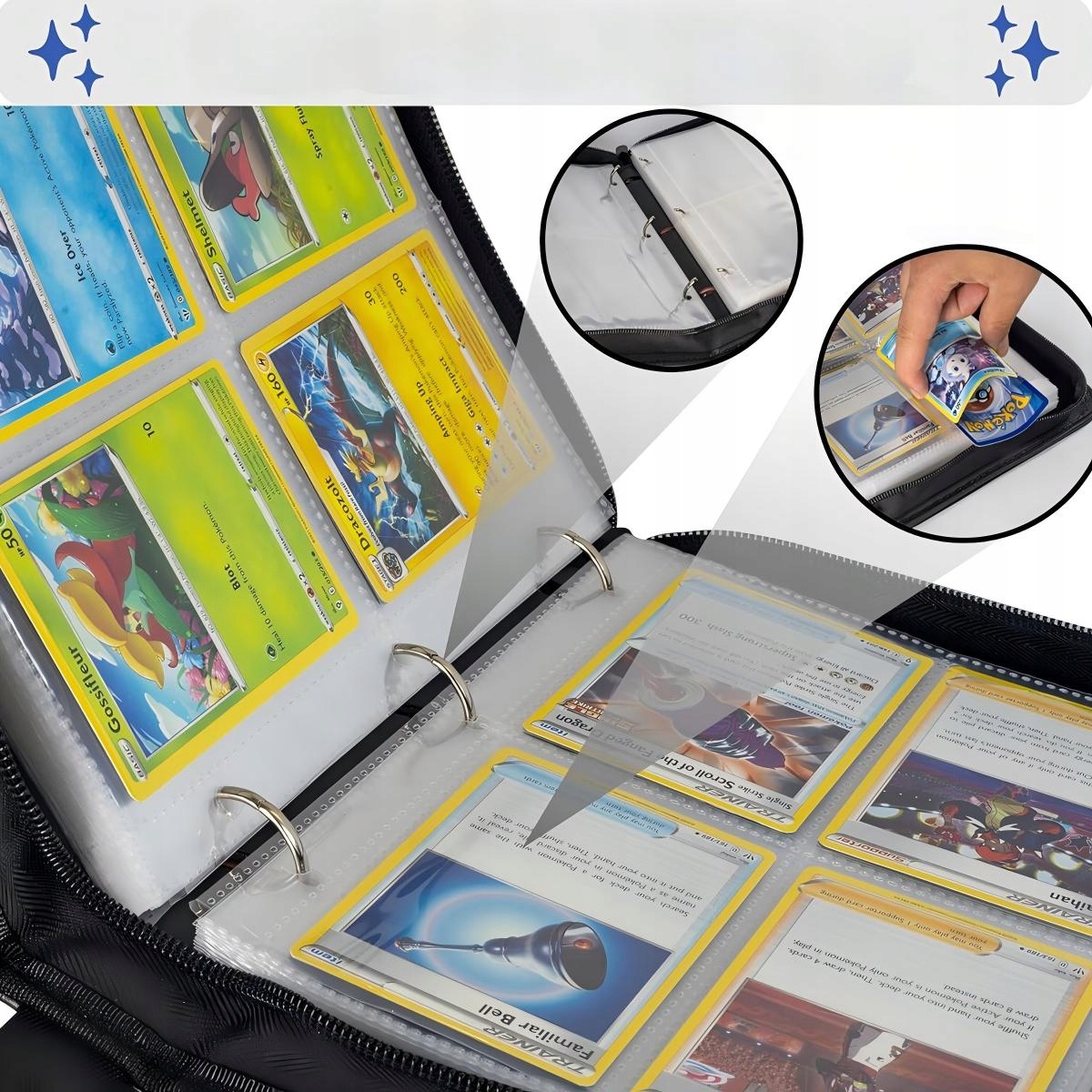 wewnątrz znajduje się 55 plastikowych stron, z których każda ma 4 kieszenie do przechowywania poszczególnych kart. Luźne kartki, każdą stronę można wyjąć i ponownie włożyć. Album kolekcjonerski Dzięki możliwości pomieścić do 440 kart, zapewnia nie tylko dużo miejsca do przechowywania, ale także zachowuje jakość i przejrzystość kolekcji. Przezroczyste koszulki prezentują karty w imponujący sposób, dzięki czemu każdy szczegół jest wyraźnie widoczny.
