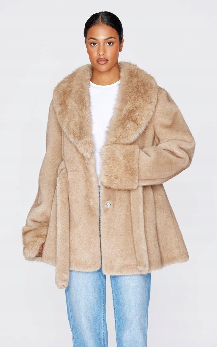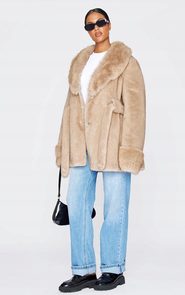 BEŻOWY WIĄZANY PŁASZCZ PRETTYLITTLETHING M