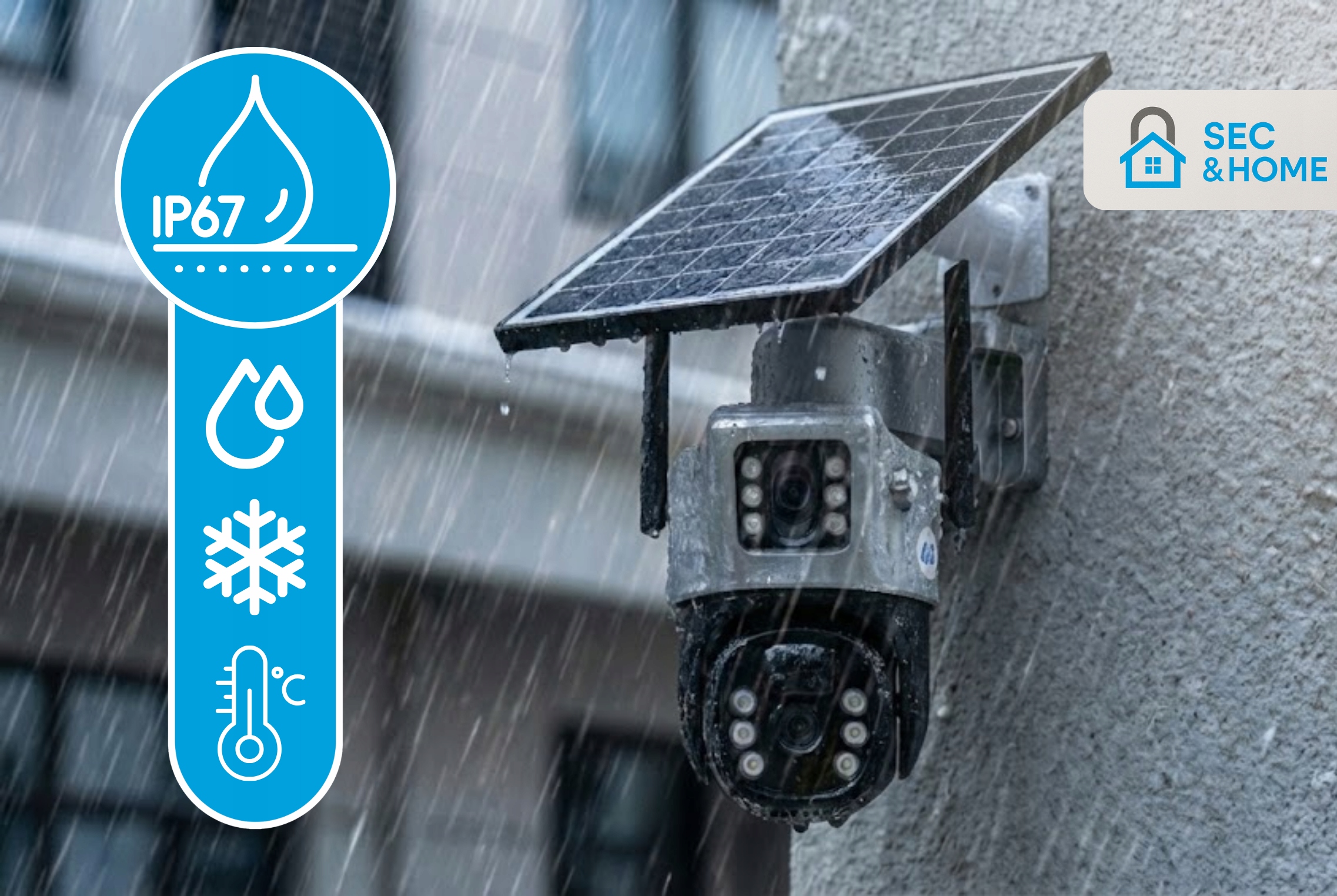 Kamera posiada szczelną obudowę w klasie IP67, dzięki czemu jest przystosowana do pracy na zewnątrz przez cały rok.