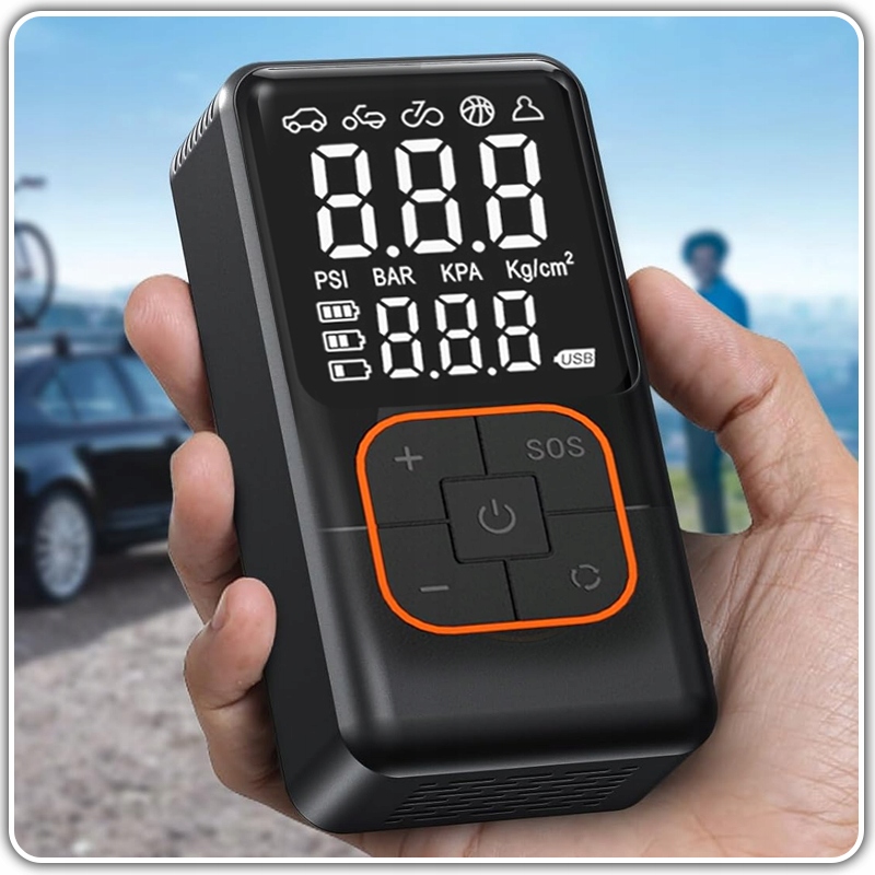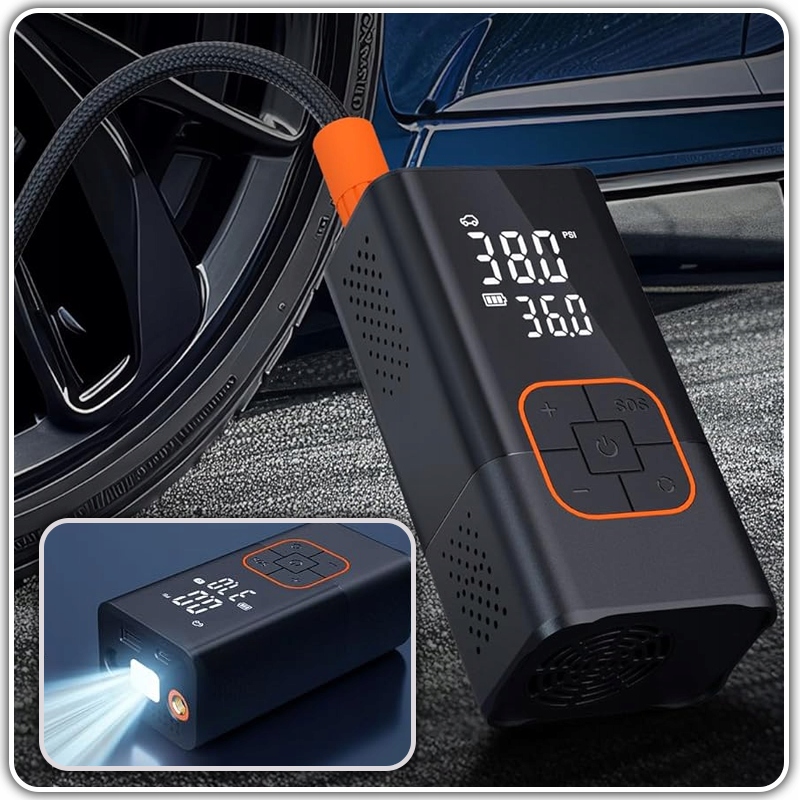 ⭐ Портативный, беспроводной и простой в использовании для ежедневного использования, для маршрута и для гаража. Кроме того, встроенный фонарик делает его полезным также в чрезвычайных ситуациях после наступления темноты.
