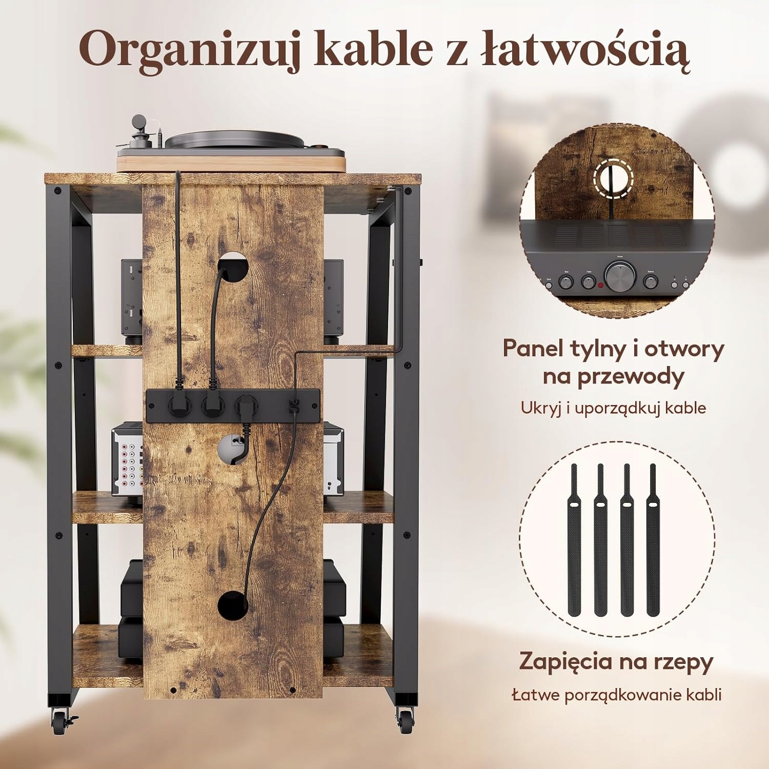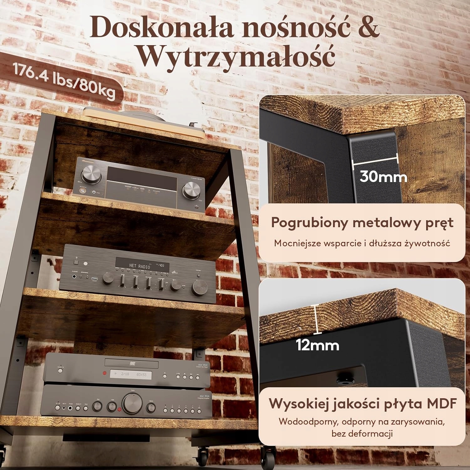 🟪 Regulowane półki – idealne dopasowanie do gramofonu, wzmacniacza i konsol