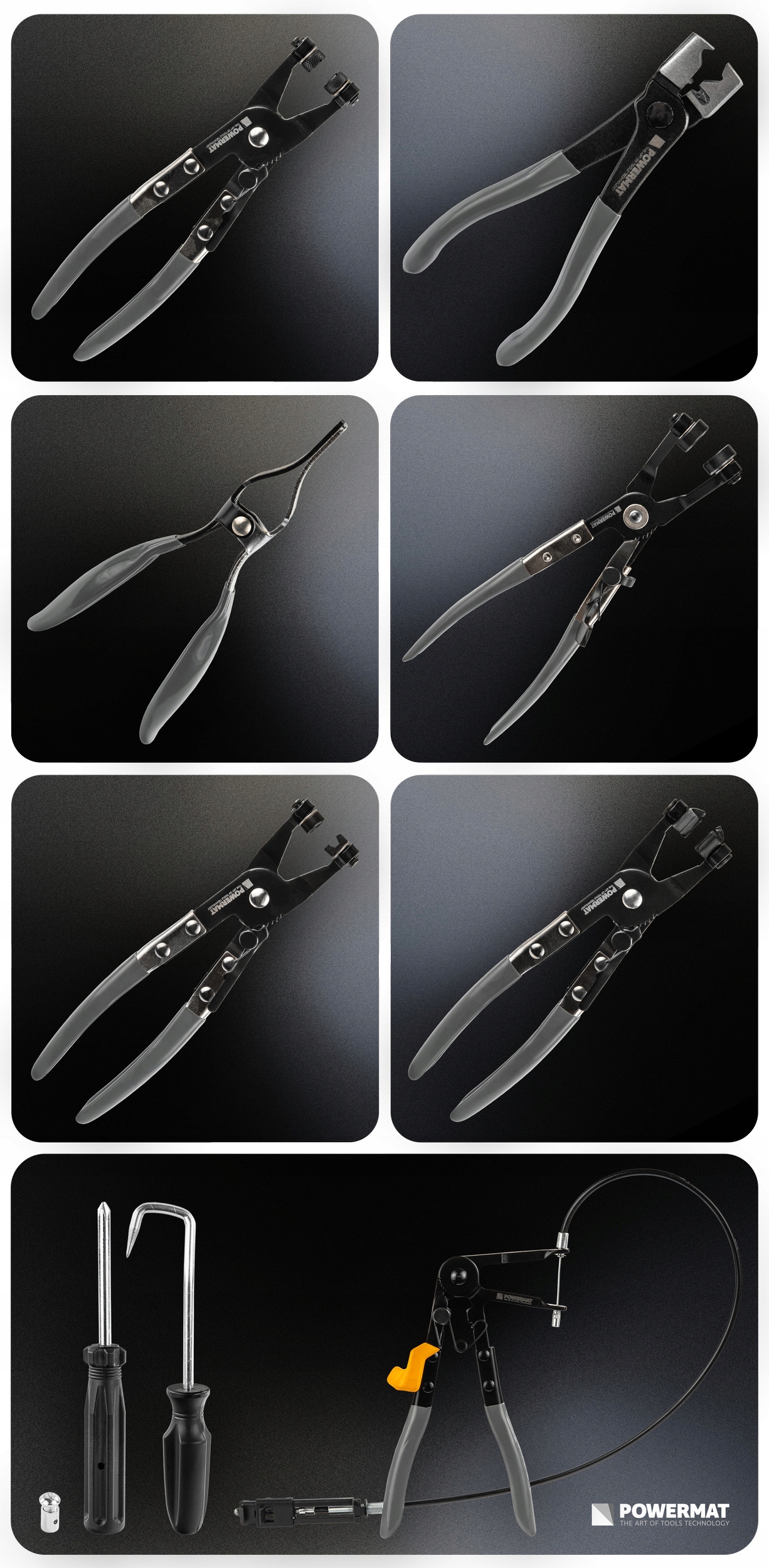 Masz pod ręką 10 elementów dopasowanych do opasek sprężynowych, CLIC, Oetiker i drucianych. Nie kombinujesz z przypadkowymi narzędziami. Oszczędzasz czas i kończysz pracę bez przestojów.