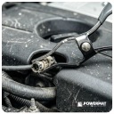 Szczypce z linką pozwalają operować opaską z dystansu. Dostajesz się pod kolektor, za silnik i przy grodzi bez demontażu połowy osprzętu. Blokada utrzymuje opaskę otwartą, więc działasz pewnie i precyzyjnie.