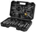 W komplecie jest 10 elementów: szczypce do opasek sprężynowych z linką, adapter do szczypiec z linką, szczypce do CLIC/CLIC-R, szczypce do opasek usznych (Oetiker), szczypce do opasek sprężynowych z obrotowymi szczękami, wygięte szczypce do wąskich opasek sprężynowych, proste szczypce do wąskich opasek sprężynowych, szczypce do opasek drucianych, hak/ściągacz do przewodów oraz wkrętak.