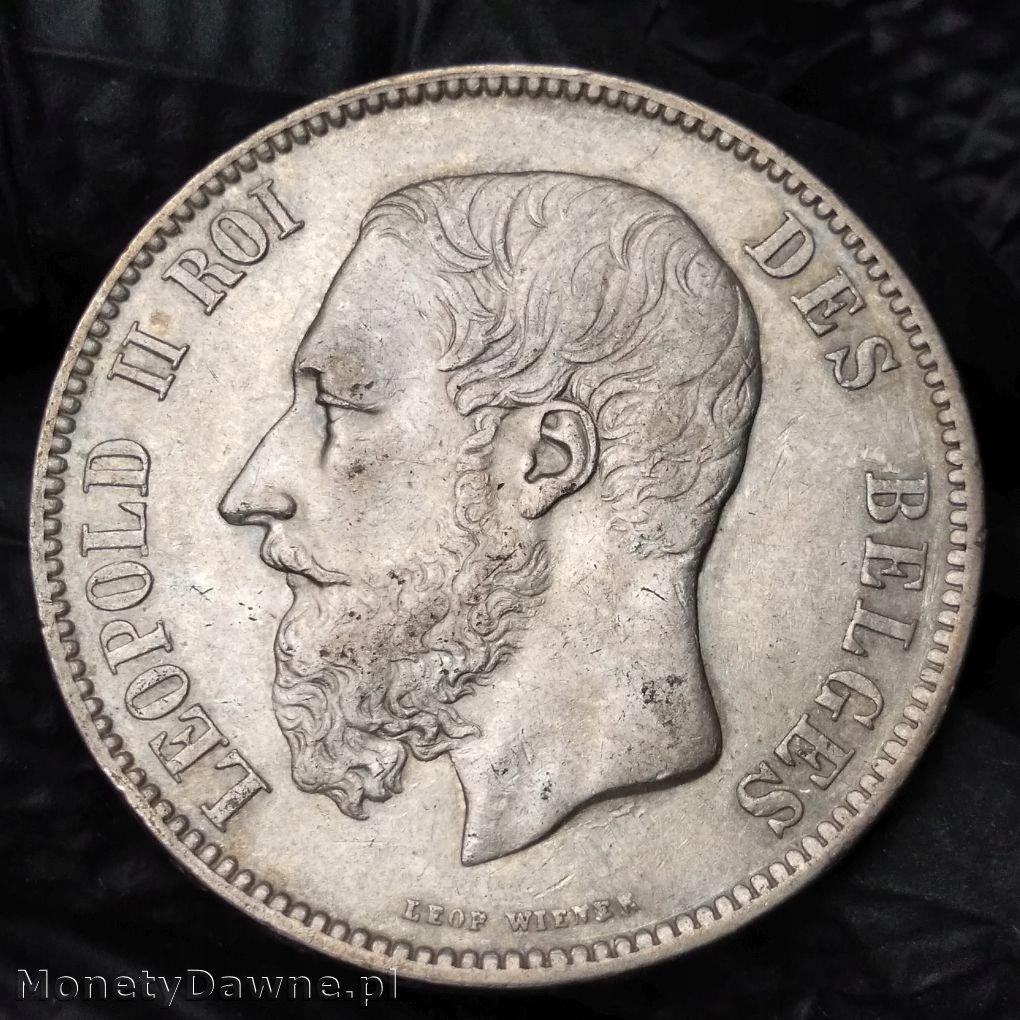 5 франков 1870 г., Леопольд II, Бельгия, НИЦЦА; очень хорошо сохранившаяся копия выше среднего.Блестящая и тонкая патина.
