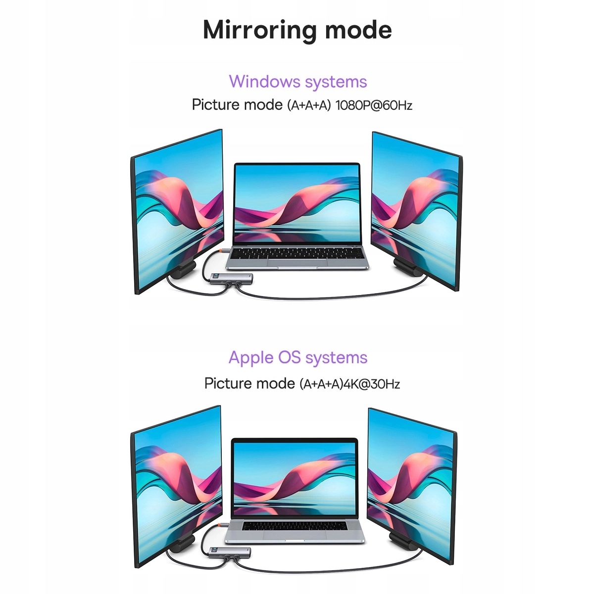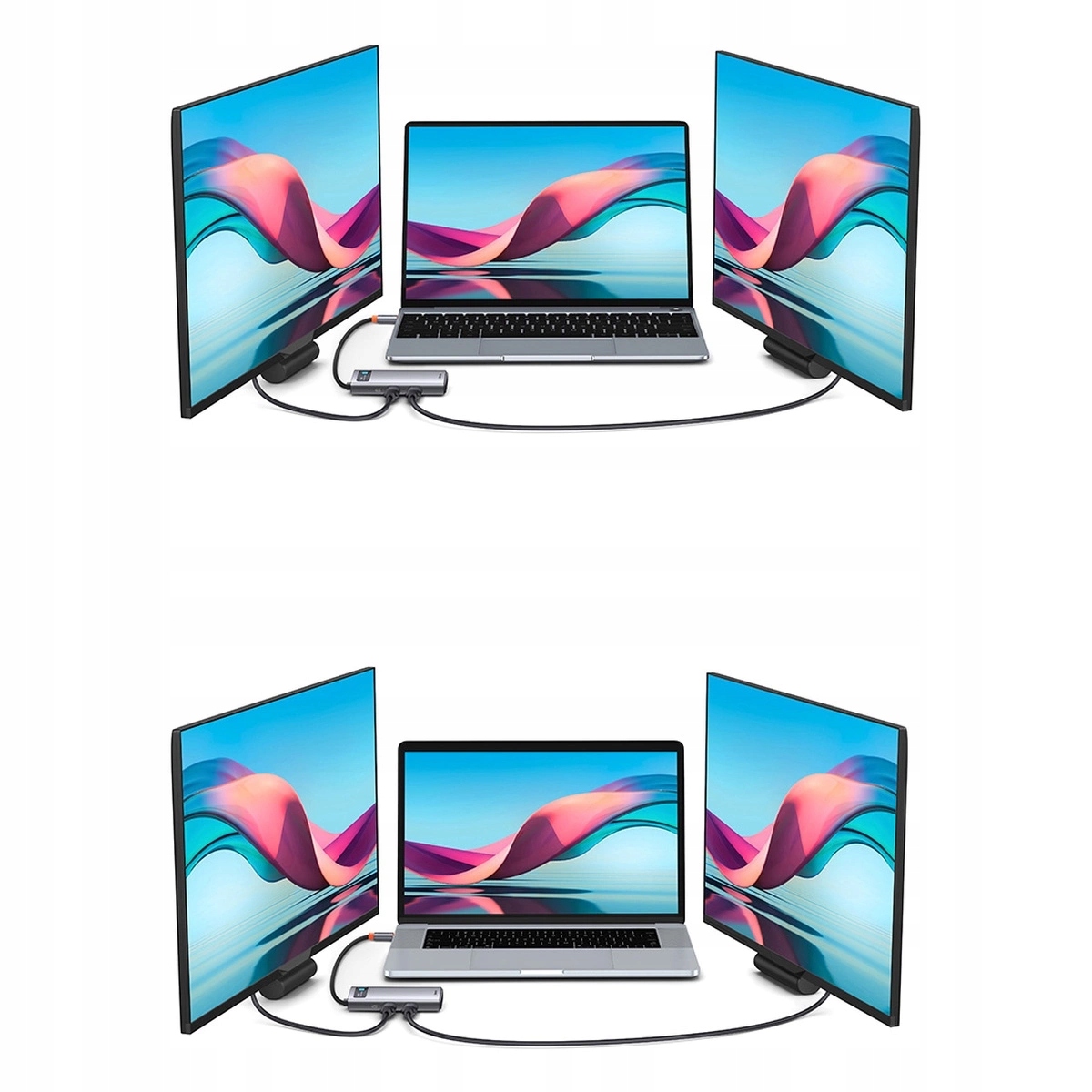 Jeżeli chcesz oglądać filmy na dużym ekranie prosto z Twojego laptopa – nie ma nic prostszego. Gadżet wyposażony jest w jedno gniazdo HDMI oraz jedno VGA, dzięki którym będziesz mógł wygodnie podłączyć laptopa do telewizora i cieszyć się wysoką jakością odtwarzanych filmów. Dodatkowo, w przypadku podłączenia kolejnego monitora HUB może działać w trybach: rozszerzenia obrazu, bądź jego kopiowania.