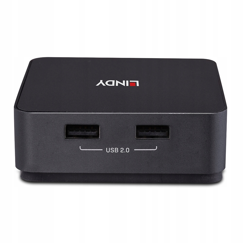 2-portowy przełącznik KVM Lindy typu C, Dual HDMI® 4K60 to kompaktowe rozwiązanie zapewniające dostęp i kontrolę nad dwoma urządzeniami wyposażonymi w port typu C z konsoli z klawiaturą, myszą i dwoma wyświetlaczami. Jest to idealne rozwiązanie do elastycznych stacji roboczych typu plug and play, umożliwiające użytkownikom sterowanie wieloma laptopami lub jednym laptopem i innym urządzeniem typu C, takim jak telefon komórkowy lub tablet z interfejsem DisplayPort Alt Mode typu C. Obsługa rozdzielczości Ultra HD do 4K30 Hz przy podłączeniu obu wyjść i 4K60 Hz przy podłączeniu jednego, aby zapewnić optymalną jakość obrazu, idealną do wysokiej wierności grafiki w konfiguracjach gier, edycji wideo lub stacji roboczych z dwoma systemami sterowania. Dodatkowe wsparcie dla High-Dynamic Range zapewnia, że treści wideo mogą być oglądane ze zwiększoną jasnością, większym kontrastem i znacznie szerszą gamą kolorów. Funkcje MST i SST umożliwiają podłączenie dwóch wyświetlaczy z rozszerzonym pulpitem lub w trybie lustrzanym, a dodatkowe urządzenia peryferyjne USB można podłączyć za pośrednictwem 2 portów USB 2.0. Podłączenie dodatkowego zasilacza typu C (opcjonalnego, nie dołączonego do zestawu) zapewnia zasilanie i ładowanie urządzenia hosta na porcie 2 za pośrednictwem portu wejściowego 100 W typu C Power Delivery 3.0. Jest to idealne rozwiązanie, gdy brakuje gniazd zasilania sieciowego i usprawnia zarządzanie kablami w minimalistycznych instalacjach. Urządzenie przełącza się automatycznie, gdy podłączone jest tylko jedno aktywne źródło, a gdy podłączonych jest wiele urządzeń, przełączanie jest również możliwe poprzez naciśnięcie przycisku wyboru na panelu przednim, co zapewnia prostą i niezawodną kontrolę, doskonałą zarówno dla profesjonalistów, jak i początkujących użytkowników. Uwaga: Źródła typu C muszą obsługiwać tryb DisplayPort Alternate dla wyjścia wideo, smartfony i tablety mogą wyświetlać tylko odbicie lustrzane. Funkcja szybkiej zamiany ról nie jest obsługiwana. Specyfikacja