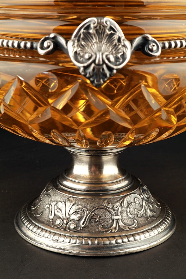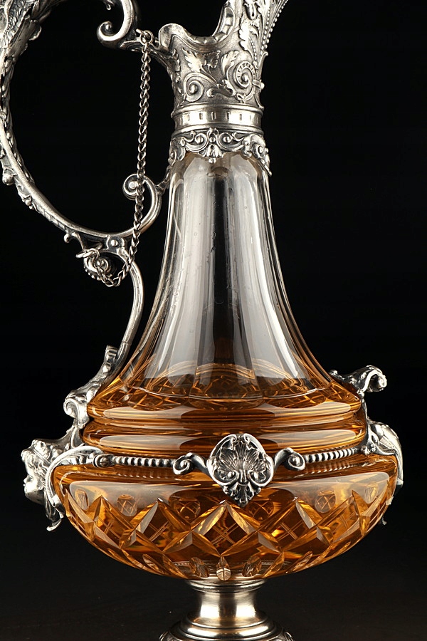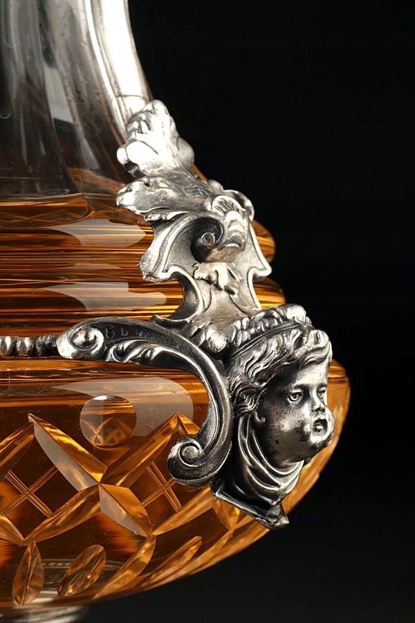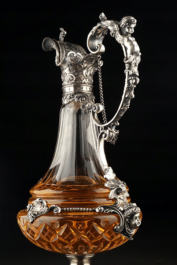 Szkło grube, szlifowane, oprawa posrebrzana.