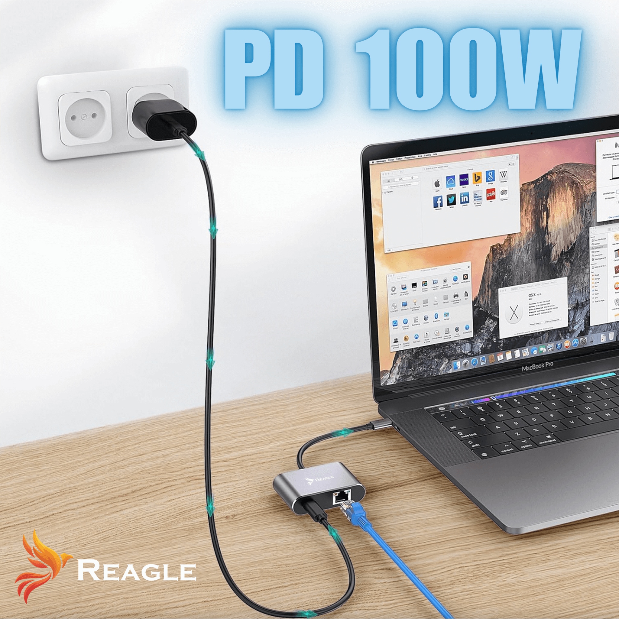 Dzięki technologii Power Delivery 100W, adapter pozwala jednocześnie: