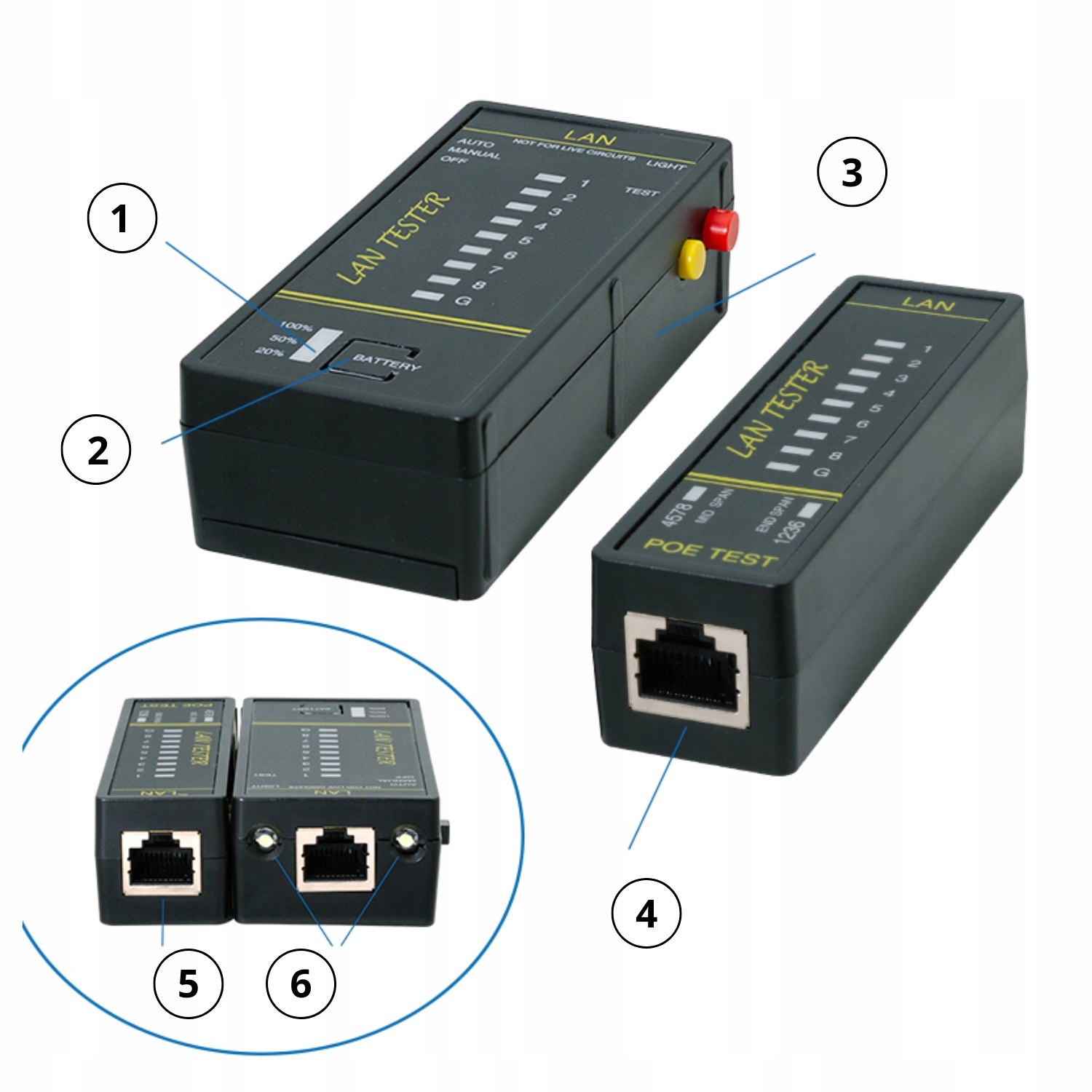 Połączenie funkcjonalności! W przeciwieństwie do podstawowych testerów ciągłości, ten model LogiLink oferuje zaawansowaną diagnostykę PoE (wskazanie par z napięciem) oraz praktyczne udogodnienia – magnes i latarkę. Choć jest to model mini i poręczny, zawiera wszystkie funkcje niezbędne do profesjonalnej diagnozy kabli RJ45, RJ12 i RJ11, co czyni go jednym z najbardziej kompletnych testerów w swojej klasie.