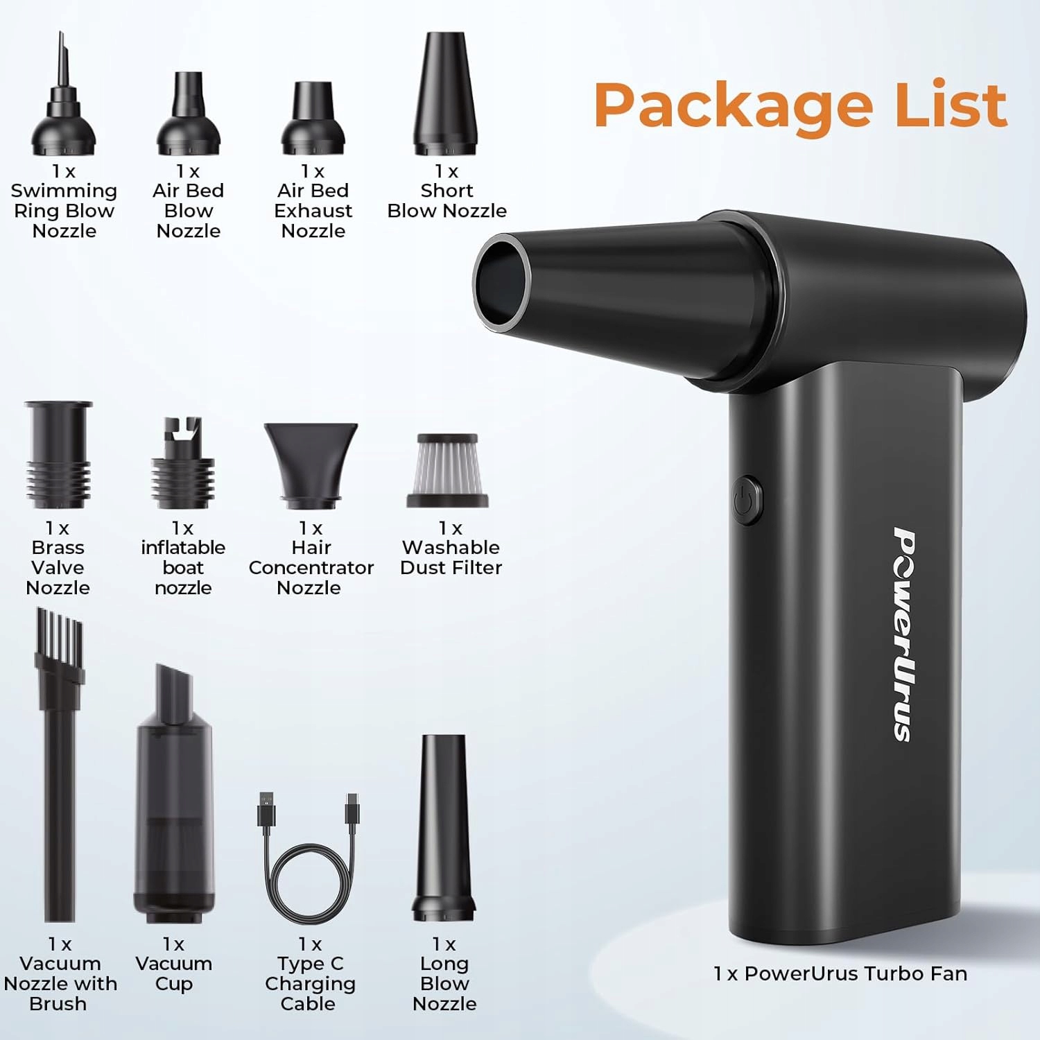 PowerUrus to wydajna dmuchawa pyłu o prędkości do 200 000 obr./min i ciśnieniu powietrza do 260 g. Czyste powierzchnie z łatwością dzięki regulowanej sile nawiewu, idealnej do codziennych porządków.