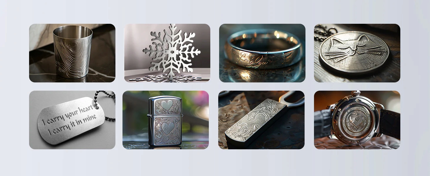 Wysokoenergetyczna wiązka lasera natychmiast utlenia metalową powierzchnię, zapewniając ponad 300 bogatych kolorów, aby spełnić Twoje kreatywne potrzeby.