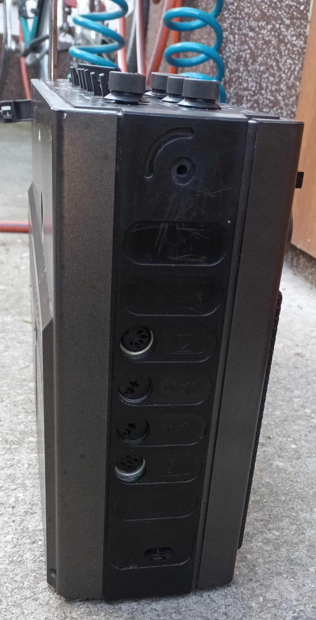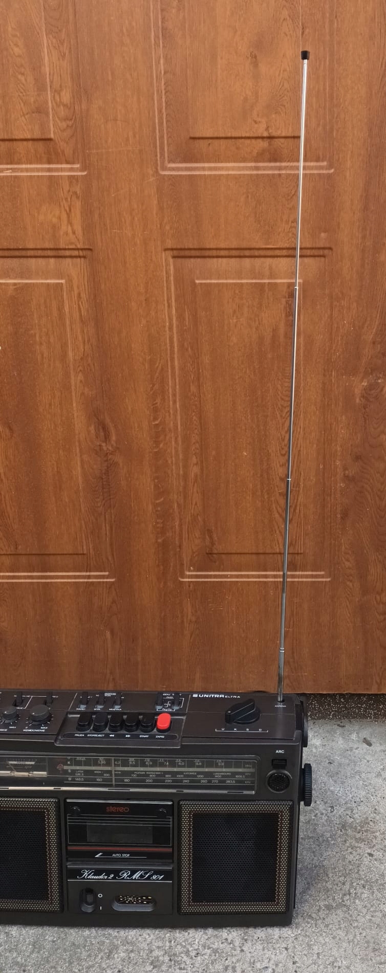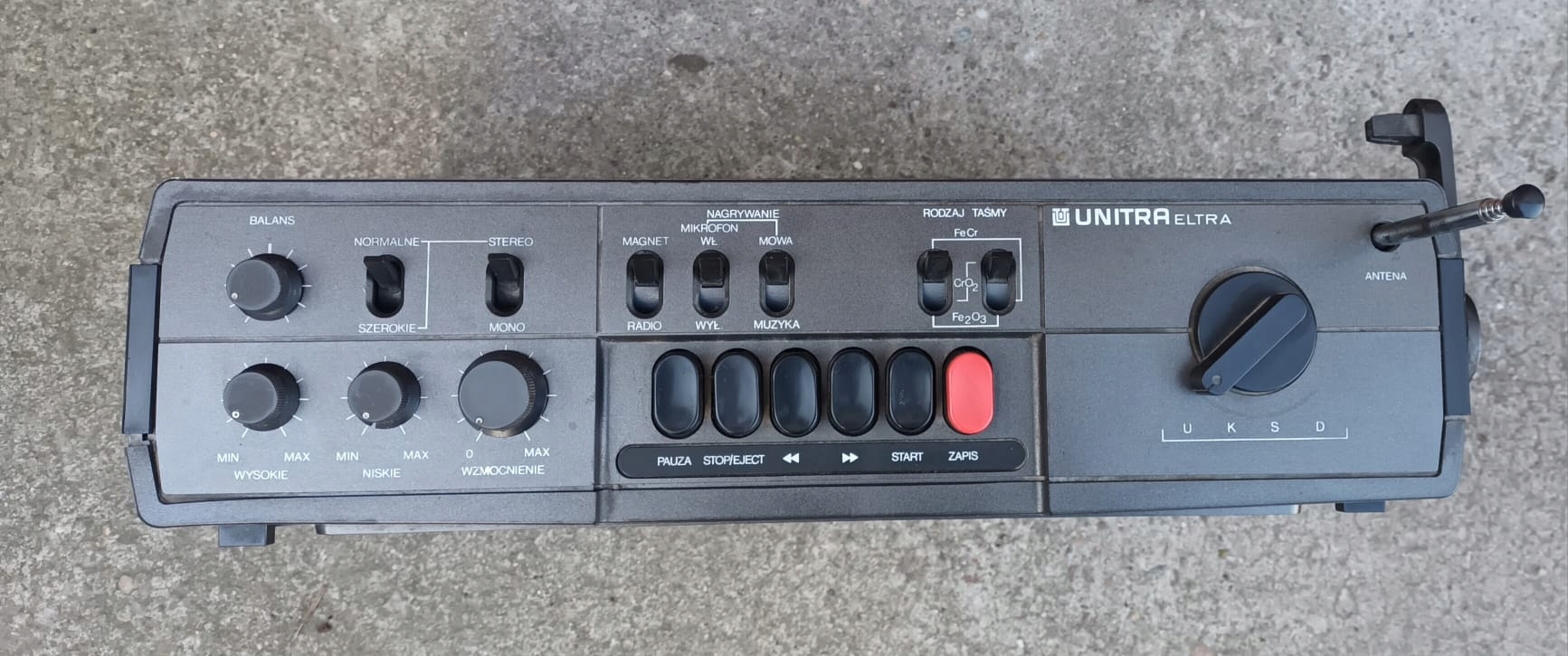 Radiomagnetofon Unitra Eltra Klaudia 2 RMS 801. Używane, sprawne. Przestrojone, brak raczki, dorobiona antena. Stan wizualny dobry. Brak kabla zasilającego. Wymiary: szerokość ok 40-43,5( z bocznym pokrętłem), wysokość ok 26cm, głębokość ok 12cm