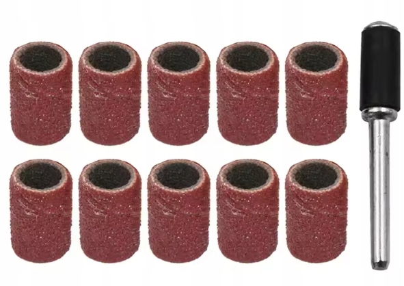 zestaw wymiennych nakładek szlifierskich (walców) wraz z trzpieniem montażowym. idealny do precyzyjnych prac domowych, warsztatowych oraz modelarskich. pasuje do większości miniszlifierek typu dremel, proxxon oraz innych narzędzi rotacyjnych.