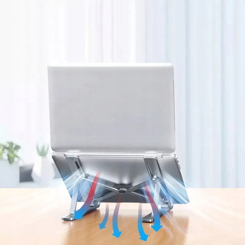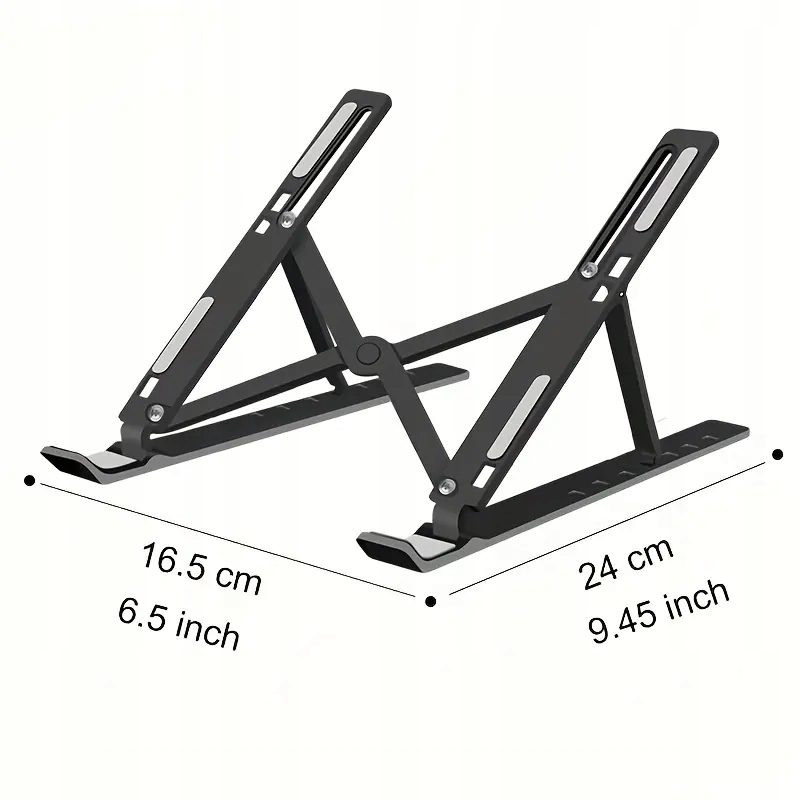Stojak jest składany, dzięki czemu po złożeniu ma bardzo małe gabaryty. Zmieści się do każdej szuflady czy torby na laptopa.
