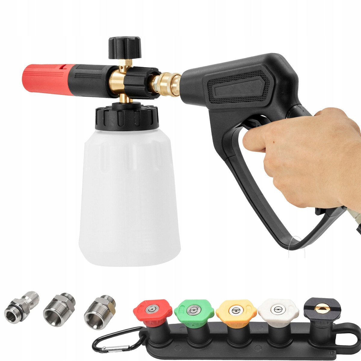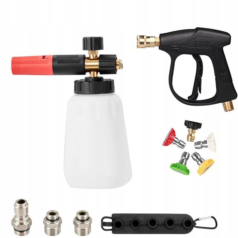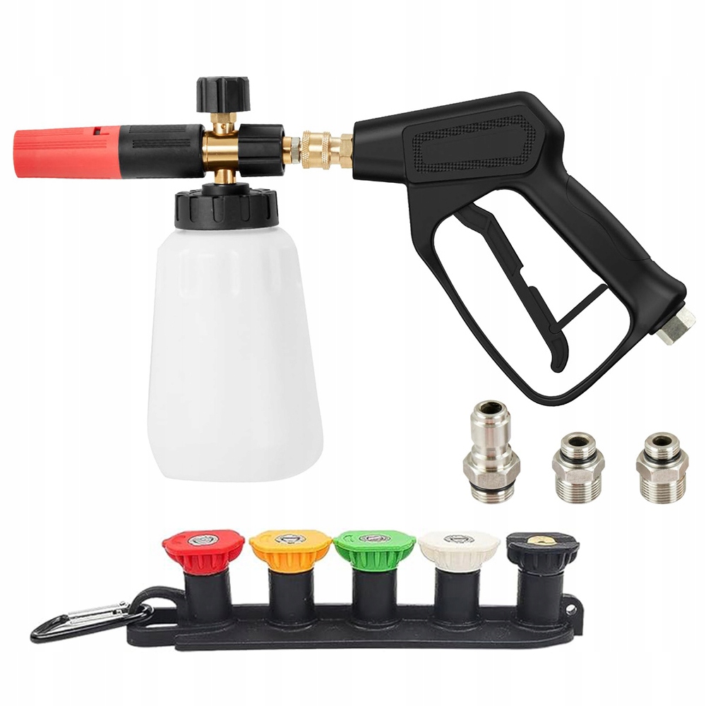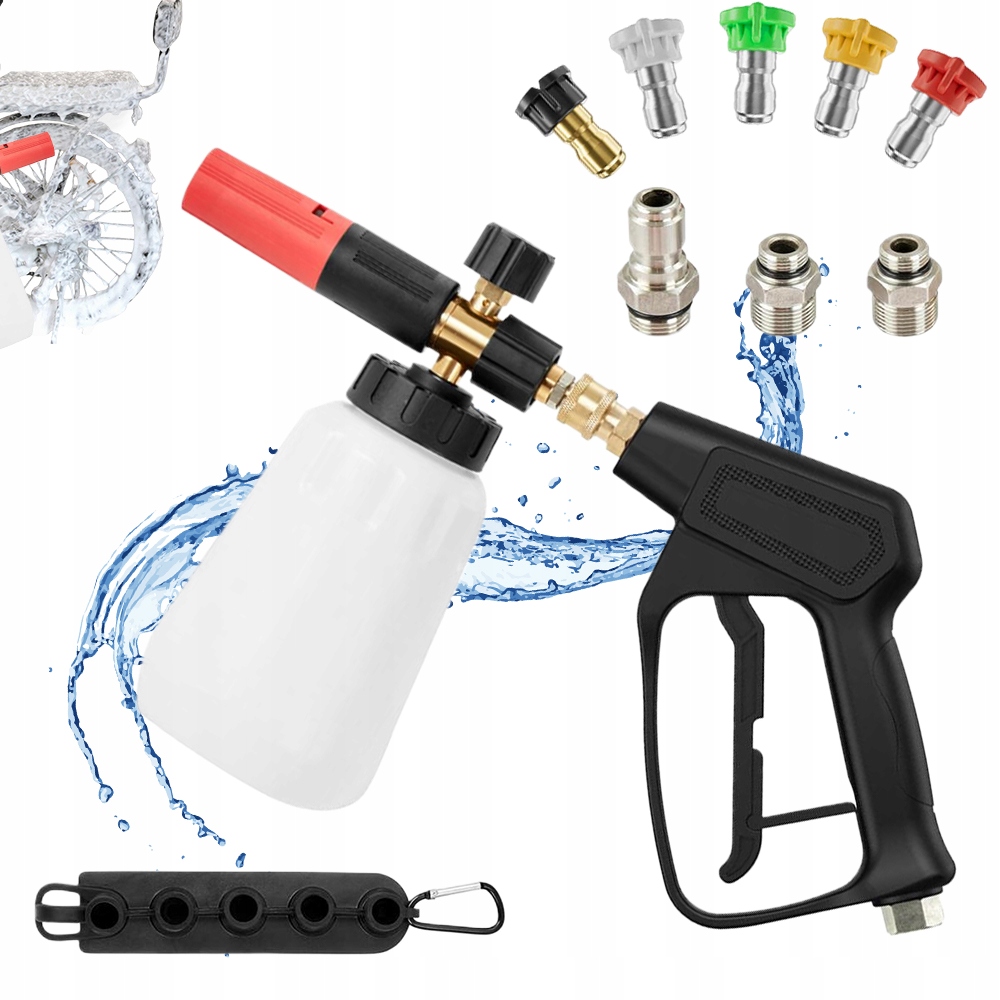 Pistolet czyszczący z pianą pneumatyczną pozwala bez wysiłku usuwać brud, zanieczyszczenia i inne zanieczyszczenia, dzięki czemu proces czyszczenia jest bardziej efektywny i wydajny. Regulowane stężenie piany i kąt natrysku pozwalają kontrolować gęstość piany i dostosowywać wzór natrysku do różnych czyszczonych powierzchni.