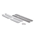 Szyny montażowe z łożyskami kulkowymi do szaf Rack 19”. Służą do mocowania obudów serwerowych lub innych urządzeń montowanych w szafach Rack 19”. Posiadają uniwersalne otwory montażowe, które pozwalają na zamontowanie dowolnych typów obudów serwerowych lub innych urządzeń, lub akcesoriów. Szyny montażowe do szaf Rack pozwalają na wygodny montaż i komfortową obsługę sprzętu. Możliwy montaż w szafach o różnych rozstawach szyn Rack . Do zamontowania wymagana jest szafa wyposażona w 4 szyny Rack (2 pary). Wielosegmentowa konstrukcja pozwala na całkowite wysunięcie zamontowanego urządzenia.