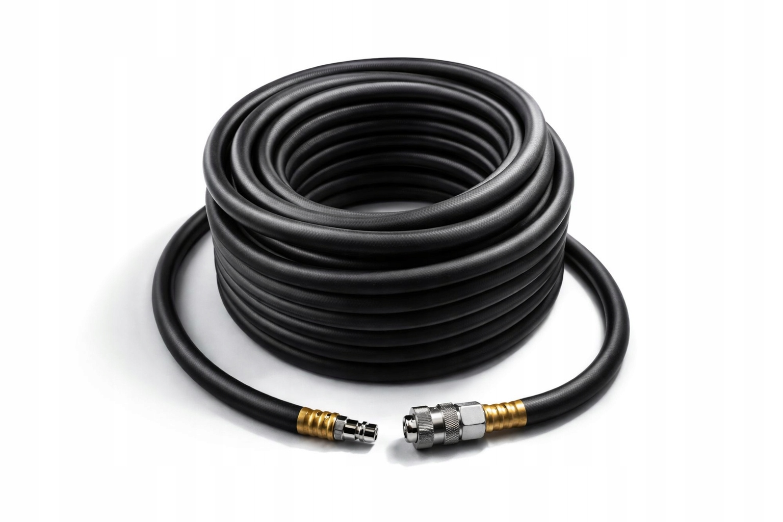 Przewód ma prostą konstrukcję, dzięki czemu nie skręca się i nie plącze podczas pracy. Zwiększa to komfort użytkowania oraz ułatwia manewrowanie wężem. Dodatkowo można go łatwo zwinąć i nawinąć na bęben, co upraszcza przechowywanie i pomaga utrzymać porządek w miejscu pracy.
