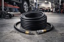Wąż jest odporny na działanie olejów oraz różnych substancji chemicznych, co zwiększa jego trwałość i pozwala na bezproblemowe użytkowanie w wymagającym środowisku warsztatowym.