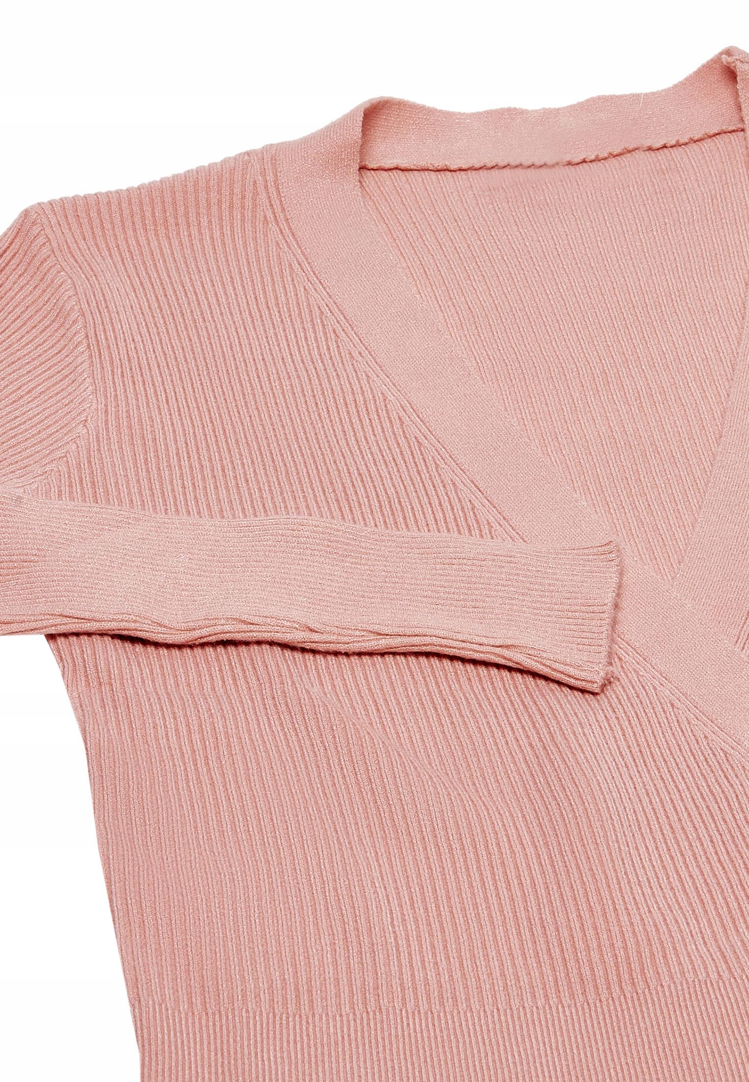 Odśwież swoją garderobę tym szykownym, dzianinowym ubraniem. Dzięki prążkowanej fakturze i głębokiemu dekoltowi w serek z wiązaniem z przodu, emanuje swobodną elegancją. Długie rękawy z dopasowanymi mankietami dodają odrobinę wyrafinowania, a skrócony krój oferuje wszechstronność, dzięki czemu sprawdzi się jako warstwowa warstwa lub stylowe nakrycie.