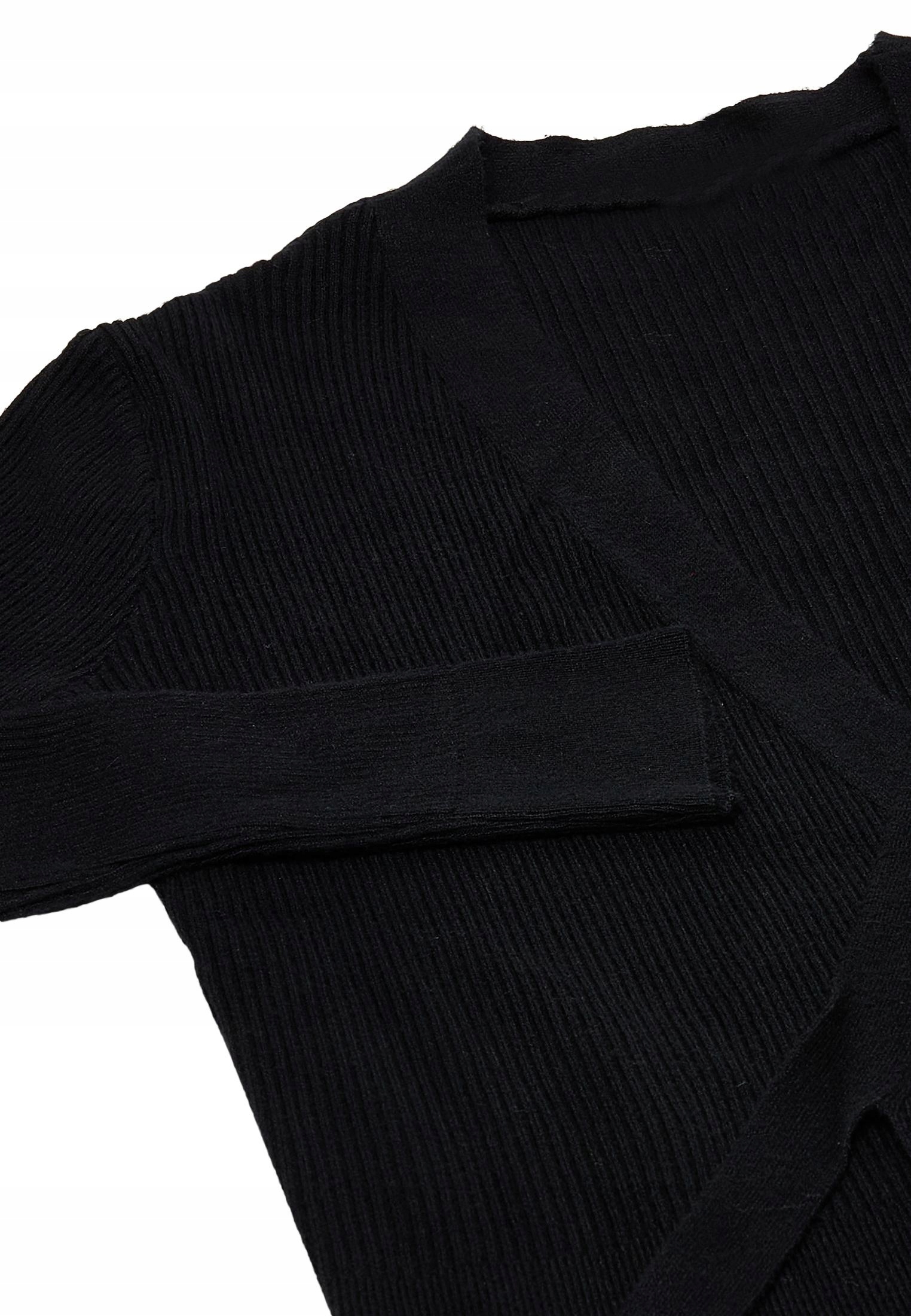 Odśwież swoją garderobę tym szykownym, dzianinowym ubraniem. Dzięki prążkowanej fakturze i głębokiemu dekoltowi w serek z wiązaniem z przodu, emanuje swobodną elegancją. Długie rękawy z dopasowanymi mankietami dodają odrobinę wyrafinowania, a skrócony krój oferuje wszechstronność, dzięki czemu sprawdzi się jako warstwowa warstwa lub stylowe nakrycie.