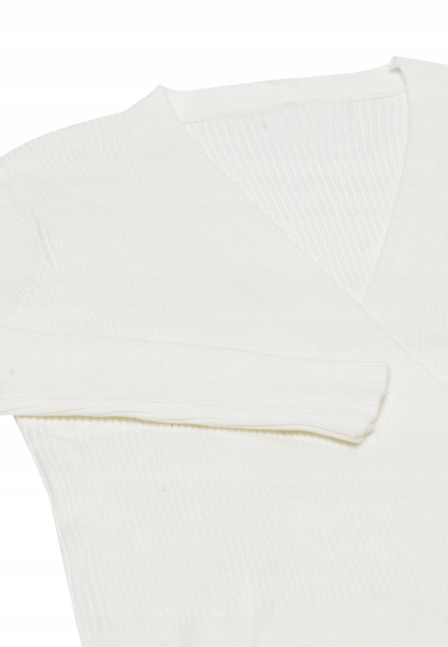 Odśwież swoją garderobę tym szykownym, dzianinowym ubraniem. Dzięki prążkowanej fakturze i głębokiemu dekoltowi w serek z wiązaniem z przodu, emanuje swobodną elegancją. Długie rękawy z dopasowanymi mankietami dodają odrobinę wyrafinowania, a skrócony krój oferuje wszechstronność, dzięki czemu sprawdzi się jako warstwowa warstwa lub stylowe nakrycie.