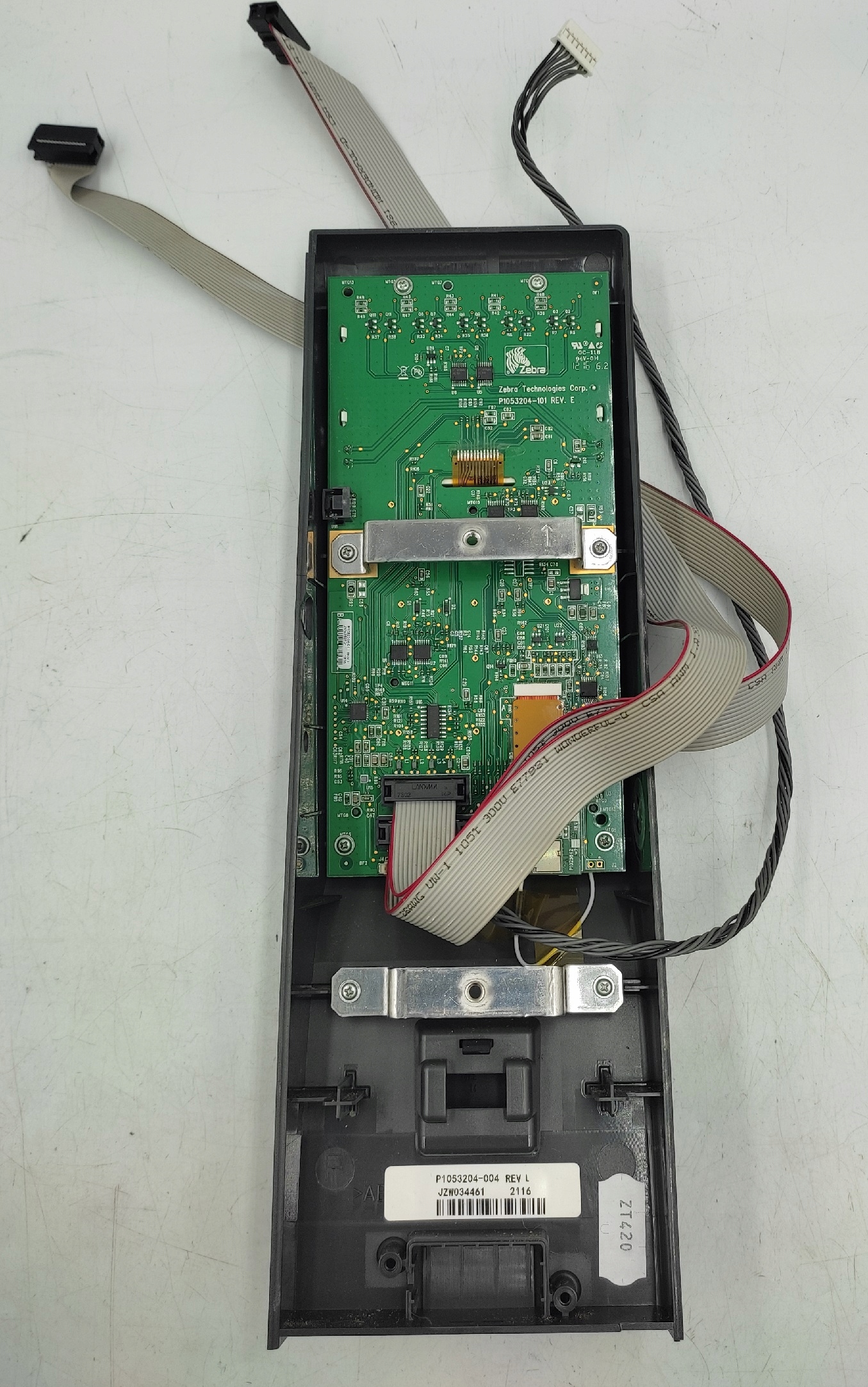 Oferowana część to oryginalny panel sterowania (control panel / operator panel) przeznaczony do drukarki Zebra ZT420. Element zawiera kompletny moduł z wyświetlaczem LCD, przyciskami sterującymi oraz elektroniką (płytką PCB). Umożliwia obsługę urządzenia — zmianę ustawień, kontrolę statusu drukarki i podstawowe operacje, takie jak pauza, podanie etykiety czy anulowanie zadania.