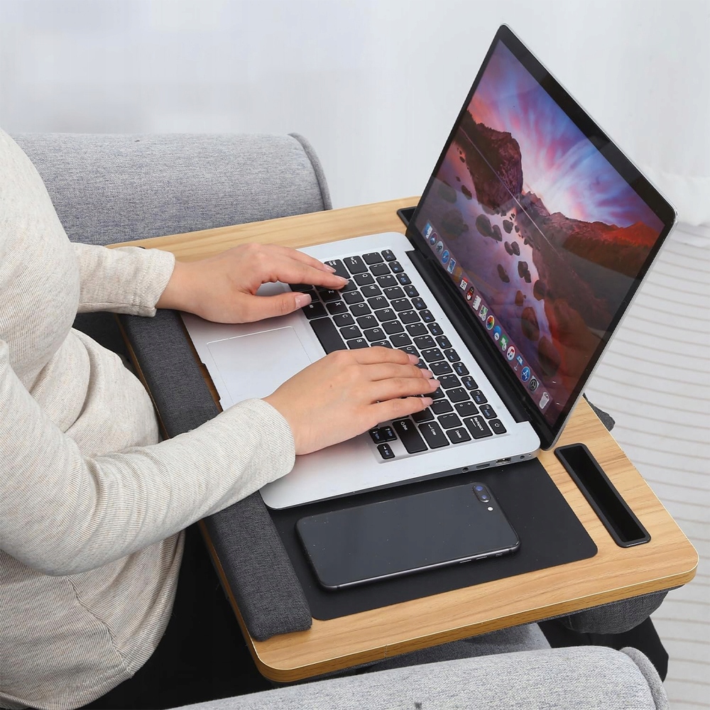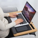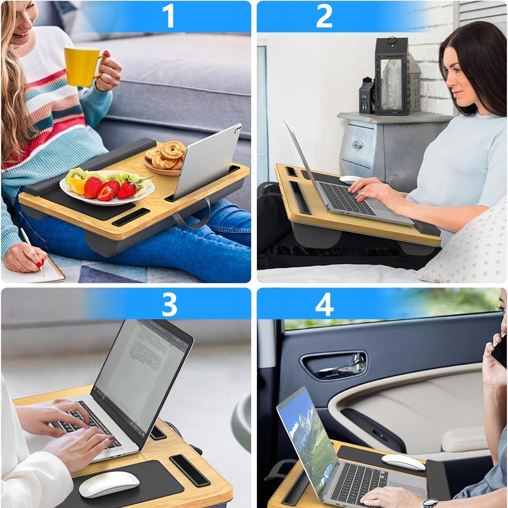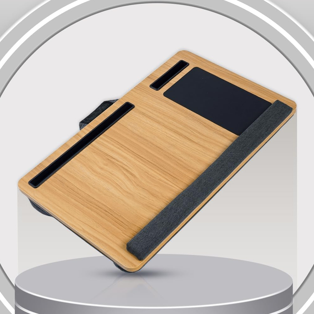 Drewniany Stoliczek na Laptop BEDEE 55x34cm z Poduszką i Podkładką pod Mysz – Idealny na Sofę i do Łóżka, Składany/Uchwyt, Pasuje do 17,3 cala - Jasnobrązowy